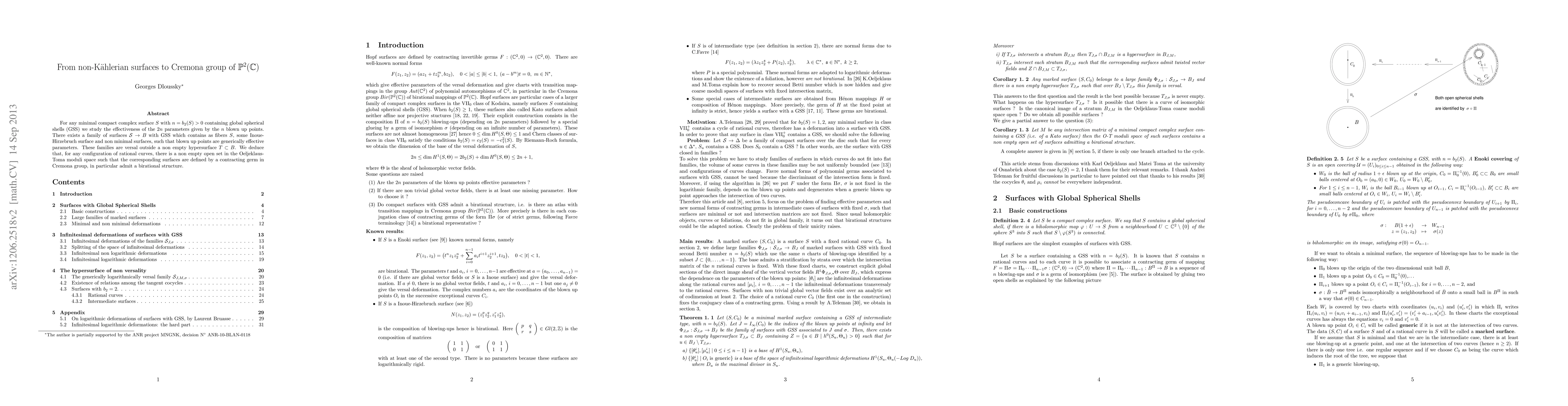 For any minimal compact complex surface S with n=b_2(S)>0 containing global spherical shells (GSS) we study the effectiveness of the 2n parameters given by the n blown up points. There exists a family of surfaces with GSS which contains as fibers S, some Inoue-Hirzebruch surface and non minimal surfaces, such that blown up points are generically effective parameters. These families are versal outside a non empty hypersurface T. We deduce that, for any configuration of rational curves, there is a non empty open set in the Oeljeklaus-Toma moduli space such that the corresponding surfaces are defined by a contracting germ in Cremona group, in particular admit a birational structure.