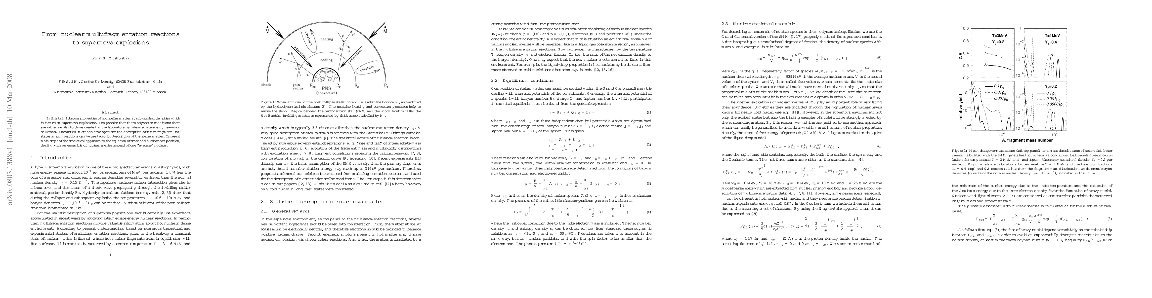 In this talk I discuss properties of hot stellar matter at sub-nuclear densities which is formed in supernova explosions. I emphasize that thermodynamic conditions there are rather similar to those created in the laboratory by intermediate-energy heavy-ion collisions. Theoretical methods developed for the description of multi-fragment final states in such reactions can be used also for description of the stellar matter. I present main steps of the statistical approach to the equation of state and nuclear composition, dealing with an ensemble of nuclear species instead of one "average" nucleus.