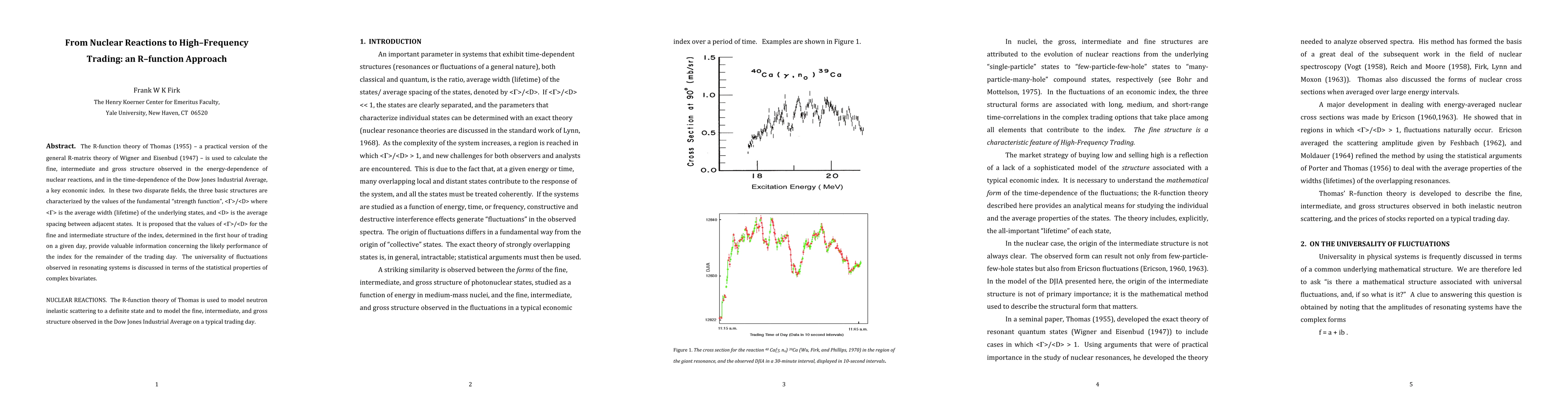 The R-function theory of Thomas is used to model neutron inelastic scattering and the fine, intermediate, and gross structure observed in the Dow Jones Industrial Average on a typical trading day.