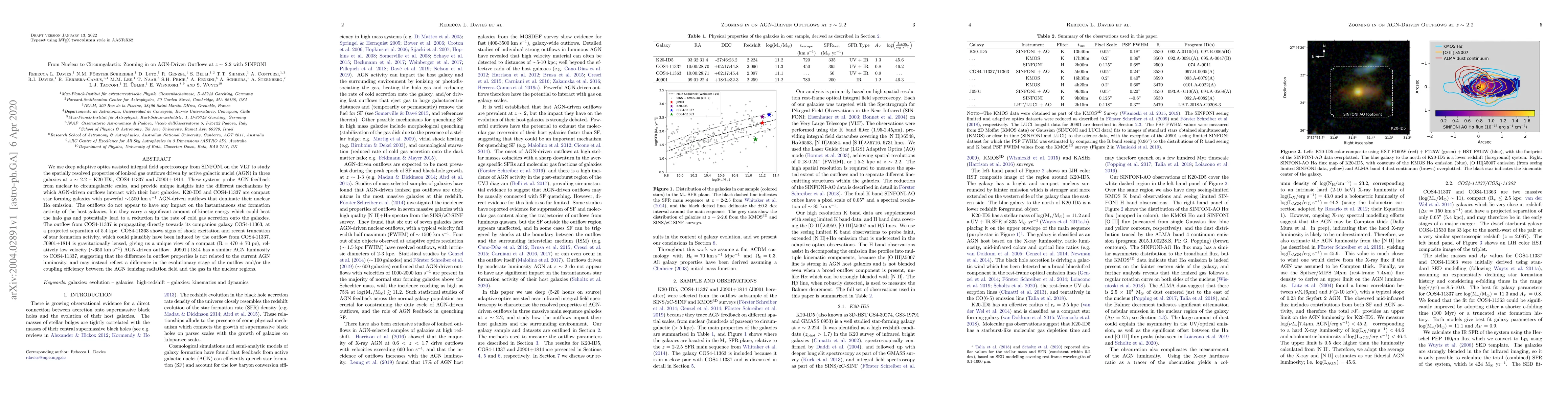 This paper uses SINFONI spectroscopy to investigate AGN-driven outflows in three galaxies at z~2.2, revealing distinct outflow behaviors and their potential impact on host galaxies and circumgalactic environments. The study highlights the kinetic energy of outflows and their possible role in regulating cold gas accretion.