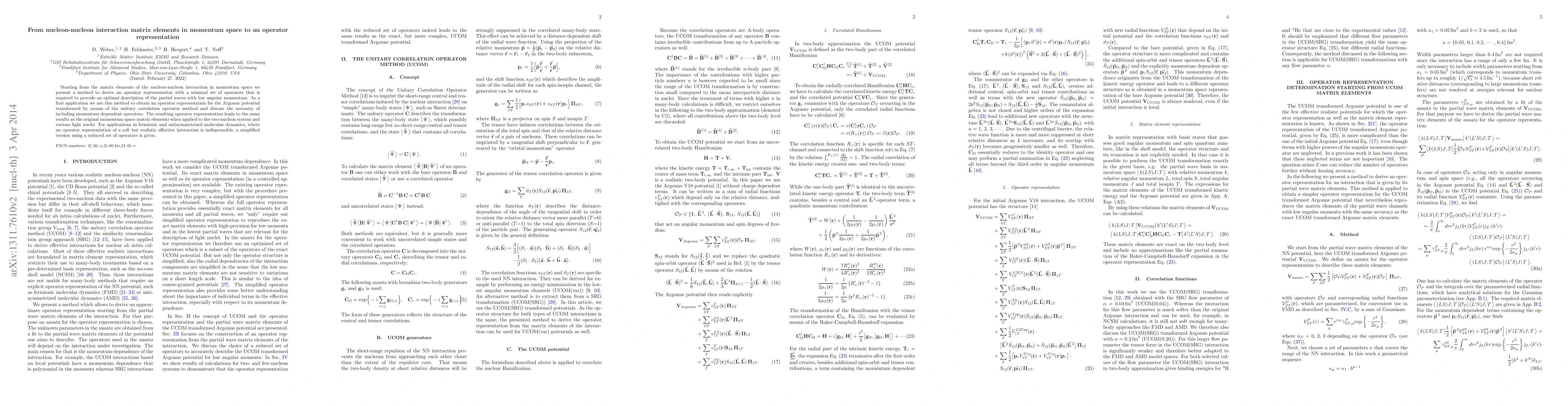 This paper develops a method to convert nucleon-nucleon interaction matrix elements from momentum space into an optimal operator representation, focusing on low angular momentum partial waves. The method is applied to the Argonne potential, demonstrating the necessity of including momentum-dependent operators and providing a simplified operator form for use in fermionic and antisymmetrized molecular dynamics.