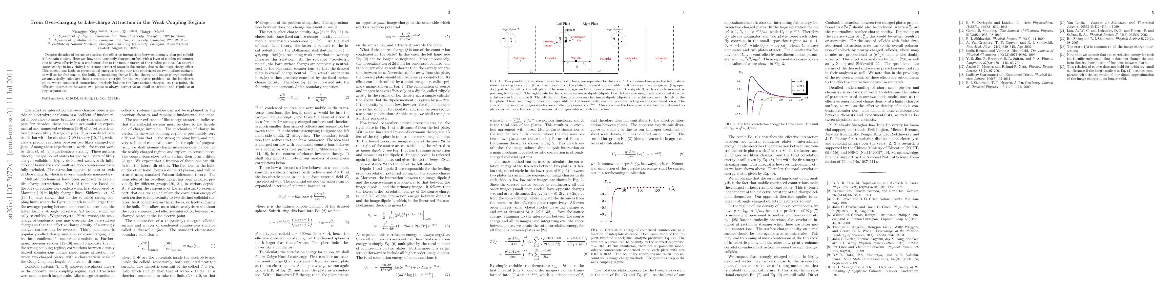 Despite decades of intensive studies, the effective interactions between strongly charged colloids still remain elusive. Here we show that a strongly charged surface with a layer of condensed counter- ions behaves effectively as a conductor, due to the mobile nature of the condensed ions. An external source charge in its vicinity is therefore attracted towards the surface, due to the image charge effect. This mechanism leads to correlational energies for counter-ions condensed on two distinct surfaces, as well as for free ions in the bulk. Generalizing Debye-Huckel theory and image charge methods, we analytically calculate these correlation energies for the two-plates problem, at the iso-electric point, where condensed counterions precisely balance the bare surface charges. At this point, the effective interaction between two plates is always attractive at small separation and repulsive at large separation.