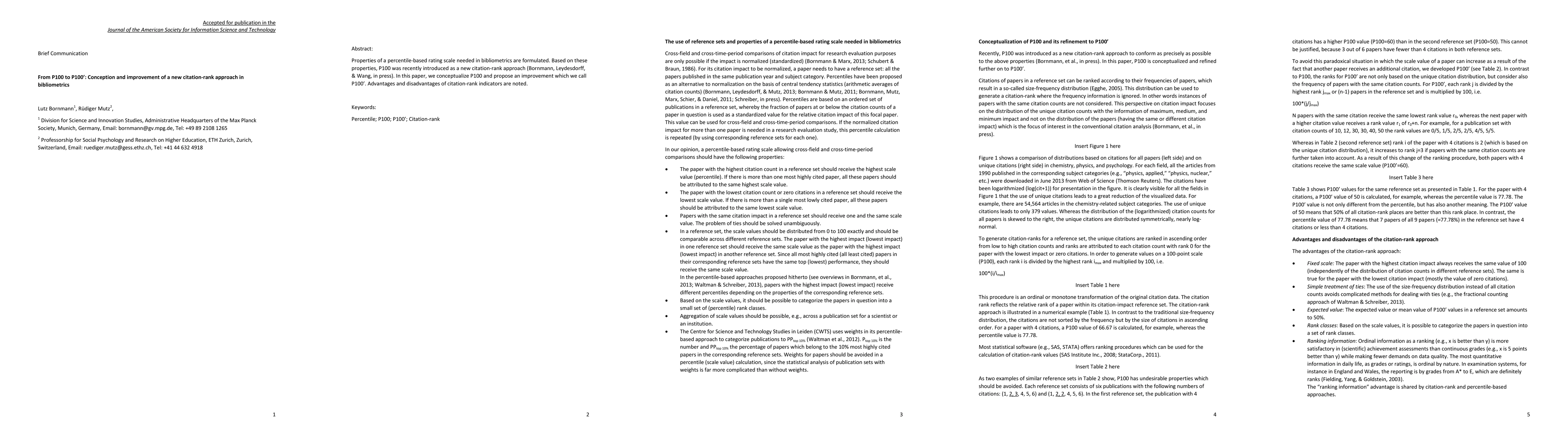 Properties of a percentile-based rating scale needed in bibliometrics are formulated. Based on these properties, P100 was recently introduced as a new citation-rank approach (Bornmann, Leydesdorff, & Wang, in press). In this paper, we conceptualize P100 and propose an improvement which we call P100_. Advantages and disadvantages of citation-rank indicators are noted.