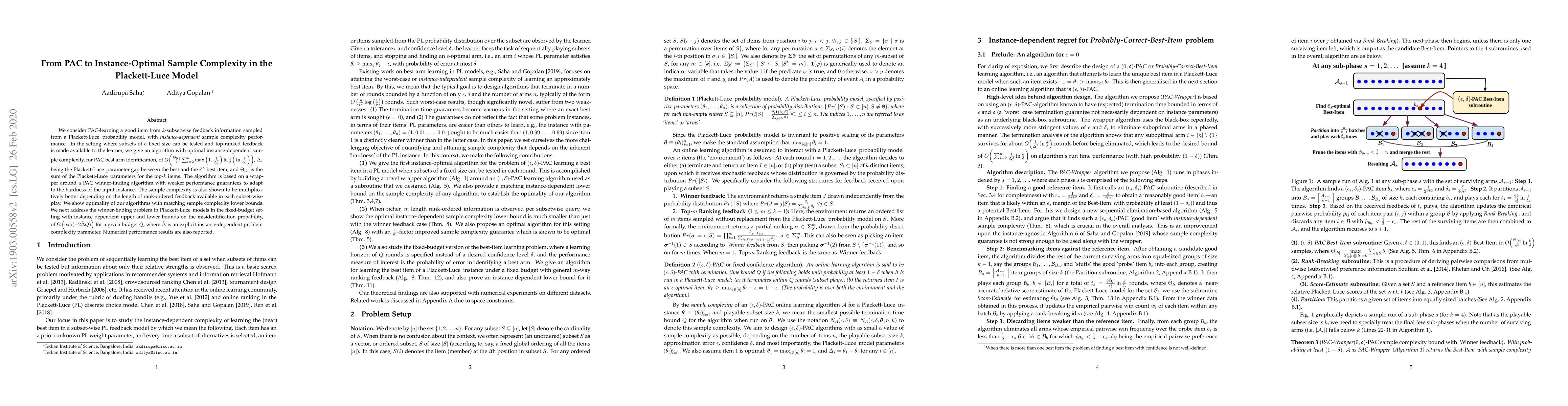Researchers have developed an algorithm to efficiently learn a good item from a set of items in a Plackett-Luce model with minimal feedback information, achieving optimal instance-dependent sample complexity.