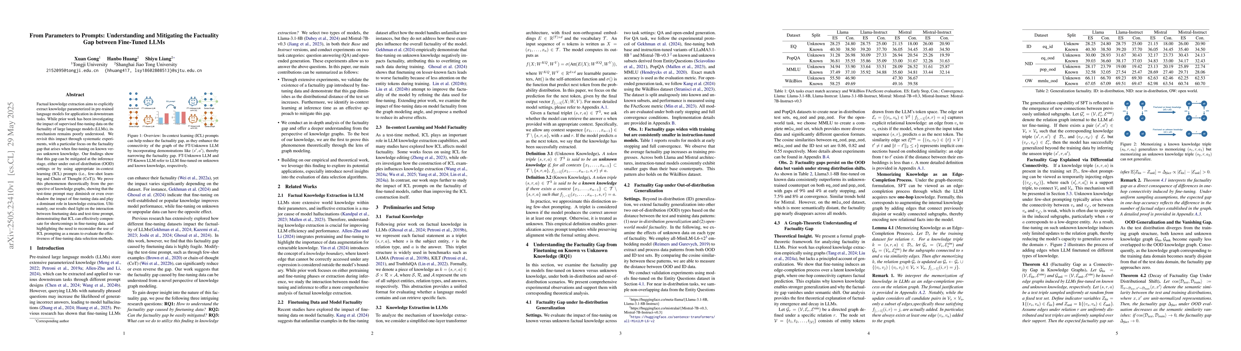 Factual knowledge extraction aims to explicitly extract knowledge parameterized in pre-trained language models for application in downstream tasks. While prior work has been investigating the impact of supervised fine-tuning data on the factuality of large language models (LLMs), its mechanism remains poorly understood. We revisit this impact through systematic experiments, with a particular focus on the factuality gap that arises when fine-tuning on known versus unknown knowledge. Our findings show that this gap can be mitigated at the inference stage, either under out-of-distribution (OOD) settings or by using appropriate in-context learning (ICL) prompts (i.e., few-shot learning and Chain of Thought (CoT)). We prove this phenomenon theoretically from the perspective of knowledge graphs, showing that the test-time prompt may diminish or even overshadow the impact of fine-tuning data and play a dominant role in knowledge extraction. Ultimately, our results shed light on the interaction between finetuning data and test-time prompt, demonstrating that ICL can effectively compensate for shortcomings in fine-tuning data, and highlighting the need to reconsider the use of ICL prompting as a means to evaluate the effectiveness of fine-tuning data selection methods.