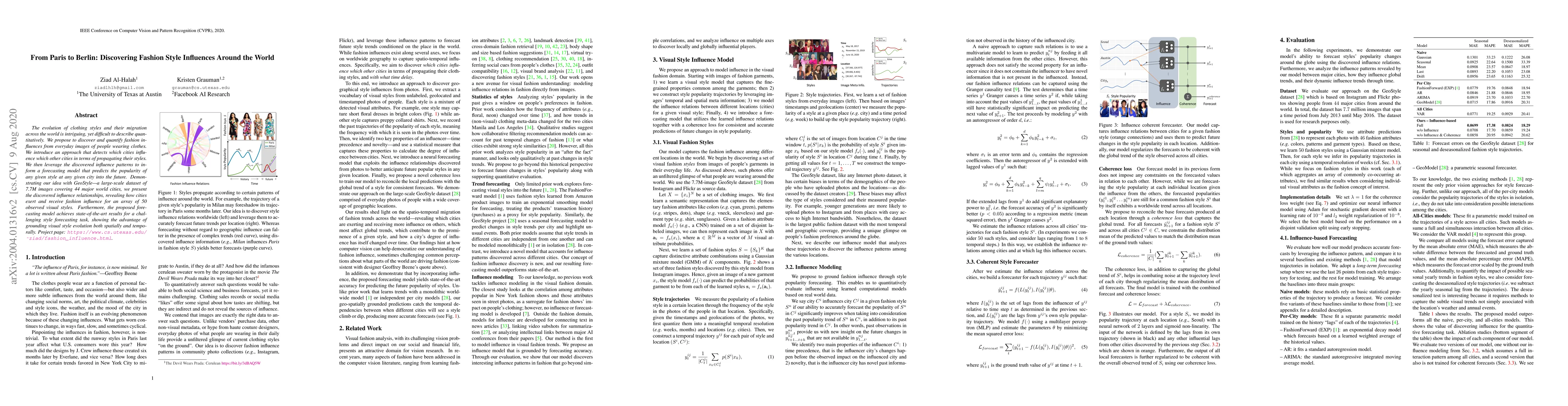 The evolution of clothing styles and their migration across the world is intriguing, yet difficult to describe quantitatively. We propose to discover and quantify fashion influences from everyday images of people wearing clothes. We introduce an approach that detects which cities influence which other cities in terms of propagating their styles. We then leverage the discovered influence patterns to inform a forecasting model that predicts the popularity of any given style at any given city into the future. Demonstrating our idea with GeoStyle---a large-scale dataset of 7.7M images covering 44 major world cities, we present the discovered influence relationships, revealing how cities exert and receive fashion influence for an array of 50 observed visual styles. Furthermore, the proposed forecasting model achieves state-of-the-art results for a challenging style forecasting task, showing the advantage of grounding visual style evolution both spatially and temporally.