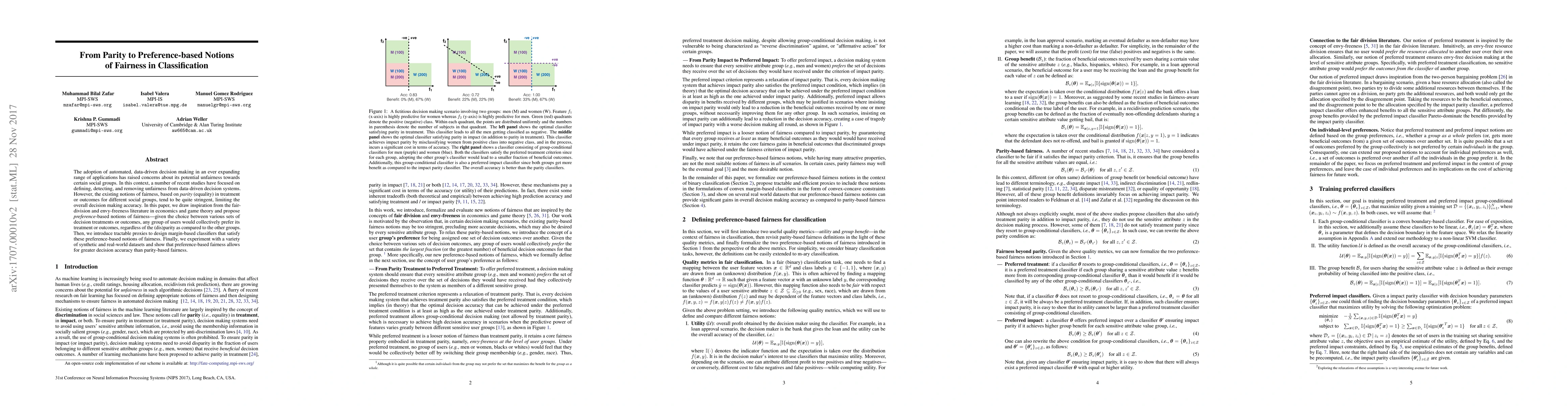 This paper proposes preference-based notions of fairness over strict parity-based fairness in classification, inspired by fair-division principles. It introduces classifiers that maximize group preferences while maintaining decision accuracy, demonstrating improved performance over traditional parity-based fairness measures.