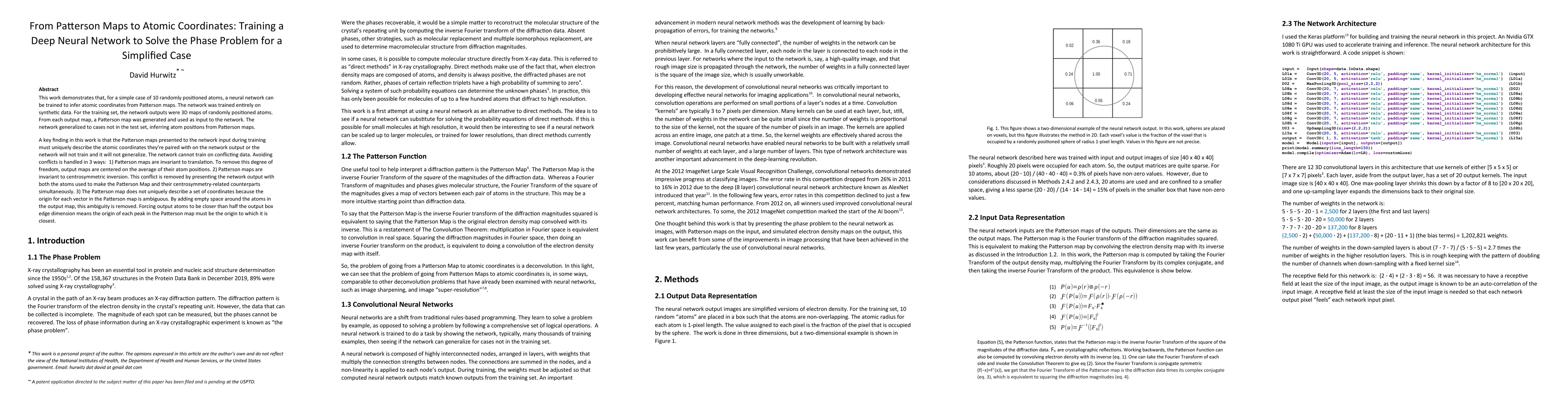 This work demonstrates that, for a simple case of 10 randomly positioned atoms, a neural network can be trained to infer atomic coordinates from Patterson maps. The network was trained entirely on synthetic data. For the training set, the network outputs were 3D maps of randomly positioned atoms. From each output map, a Patterson map was generated and used as input to the network. The network generalized to cases not in the test set, inferring atom positions from Patterson maps. A key finding in this work is that the Patterson maps presented to the network input during training must uniquely describe the atomic coordinates they are paired with on the network output or the network will not train and it will not generalize. The network cannot train on conflicting data. Avoiding conflicts is handled in 3 ways: 1. Patterson maps are invariant to translation. To remove this degree of freedom, output maps are centered on the average of their atom positions. 2. Patterson maps are invariant to centrosymmetric inversion. This conflict is removed by presenting the network output with both the atoms used to make the Patterson Map and their centrosymmetry-related counterparts simultaneously. 3. The Patterson map does not uniquely describe a set of coordinates because the origin for each vector in the Patterson map is ambiguous. By adding empty space around the atoms in the output map, this ambiguity is removed. Forcing output atoms to be closer than half the output box edge dimension means the origin of each peak in the Patterson map must be the origin to which it is closest.