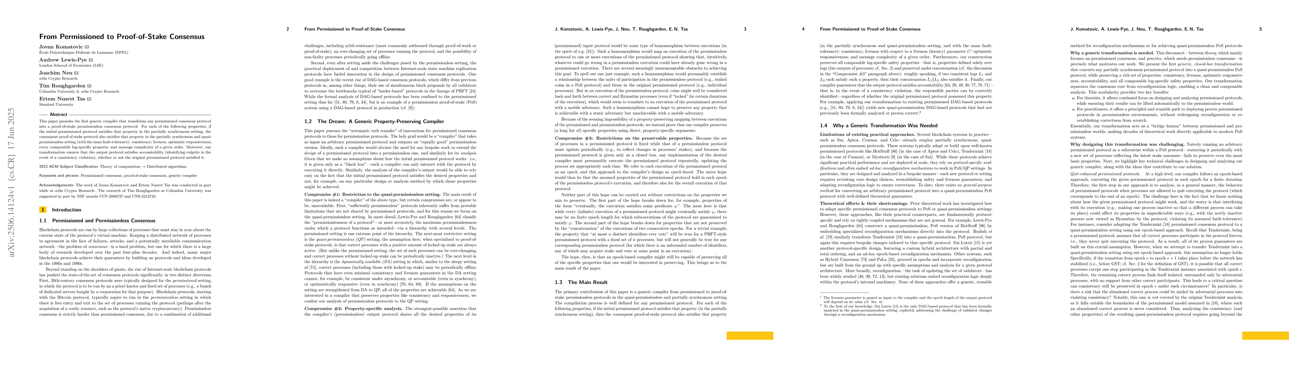 This research introduces a compiler transforming permissioned consensus protocols into proof-of-stake permissionless ones, preserving crucial properties like consistency, liveness, and message complexity. It also ensures accountability, even if the original didn't have it.