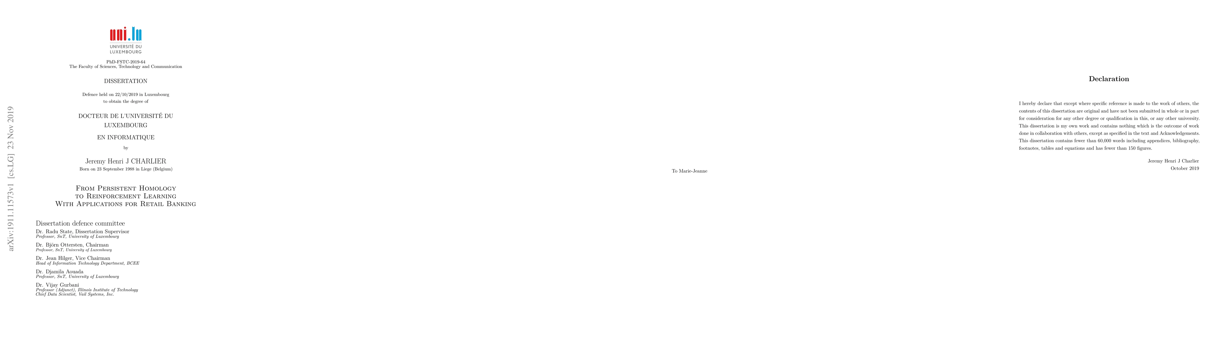 The retail banking services are one of the pillars of the modern economic growth. However, the evolution of the client's habits in modern societies and the recent European regulations promoting more competition mean the retail banks will encounter serious challenges for the next few years, endangering their activities. They now face an impossible compromise: maximizing the satisfaction of their hyper-connected clients while avoiding any risk of default and being regulatory compliant. Therefore, advanced and novel research concepts are a serious game-changer to gain a competitive advantage. In this context, we investigate in this thesis different concepts bridging the gap between persistent homology, neural networks, recommender engines and reinforcement learning with the aim of improving the quality of the retail banking services. Our contribution is threefold. First, we highlight how to overcome insufficient financial data by generating artificial data using generative models and persistent homology. Then, we present how to perform accurate financial recommendations in multi-dimensions. Finally, we underline a reinforcement learning model-free approach to determine the optimal policy of money management based on the aggregated financial transactions of the clients. Our experimental data sets, extracted from well-known institutions where the privacy and the confidentiality of the clients were not put at risk, support our contributions. In this work, we provide the motivations of our retail banking research project, describe the theory employed to improve the financial services quality and evaluate quantitatively and qualitatively our methodologies for each of the proposed research scenarios.