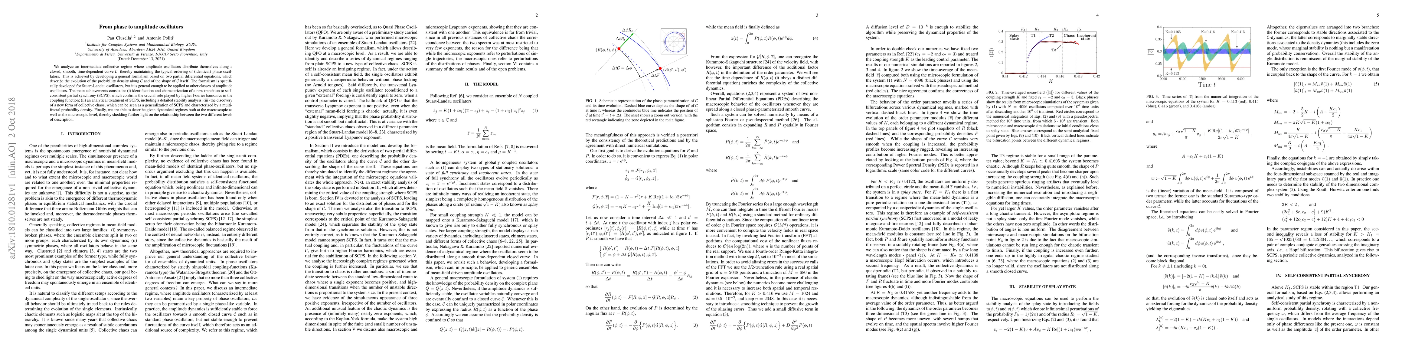 This paper develops a formalism to analyze the transition from phase to amplitude oscillators, focusing on a collective regime where amplitude oscillators follow a smooth, time-dependent curve. It identifies a new transition to self-consistent partial synchrony, provides an analytical treatment and stability analysis, and discovers a new form of collective chaos characterized by a multifractal probability density.