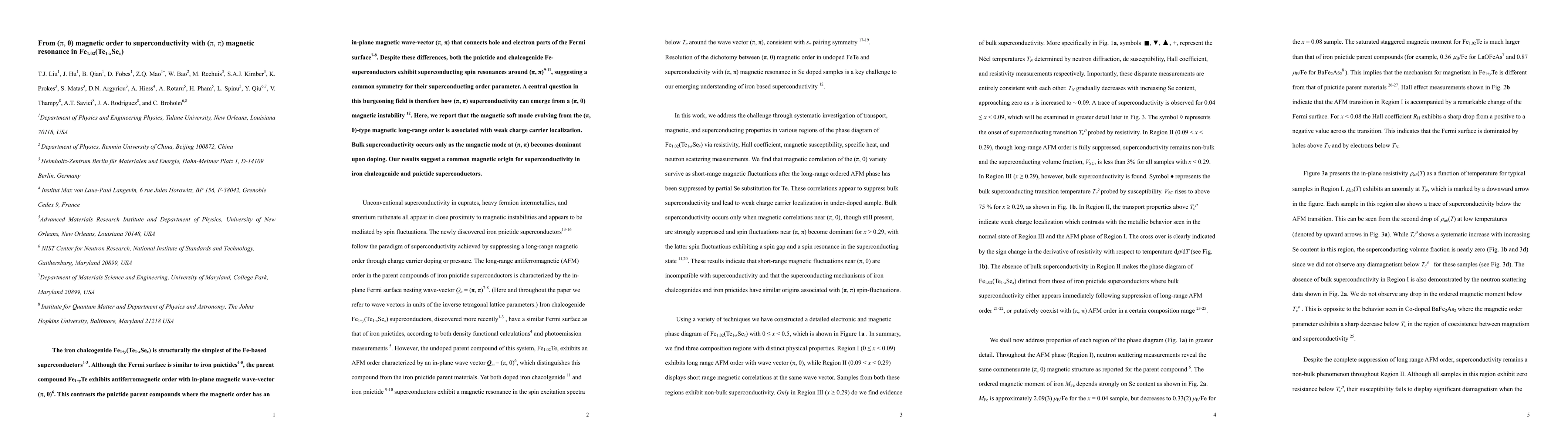 The iron chalcogenide Fe1+y(Te1-xSex) is structurally the simplest of the Fe-based superconductors. Although the Fermi surface is similar to iron pnictides, the parent compound Fe1+yTe exhibits antiferromagnetic order with in-plane magnetic wave-vector (pi, 0). This contrasts the pnictide parent compounds where the magnetic order has an in-plane magnetic wave-vector (pi, pi) that connects hole and electron parts of the Fermi surface. Despite these differences, both the pnictide and chalcogenide Fe-superconductors exhibit superconducting spin resonances around (pi, pi), suggesting a common symmetry for their superconducting order parameter. A central question in this burgeoning field is therefore how (pi, pi) superconductivity can emerge from a (pi, 0) magnetic instability. Here, we report that the magnetic soft mode evolving from the (pi, 0)-type magnetic long-range order is associated with weak charge carrier localization. Bulk superconductivity occurs only as the magnetic mode at (pi, pi) becomes dominant upon doping. Our results suggest a common magnetic origin for superconductivity in iron chalcogenide and pnictide superconductors.