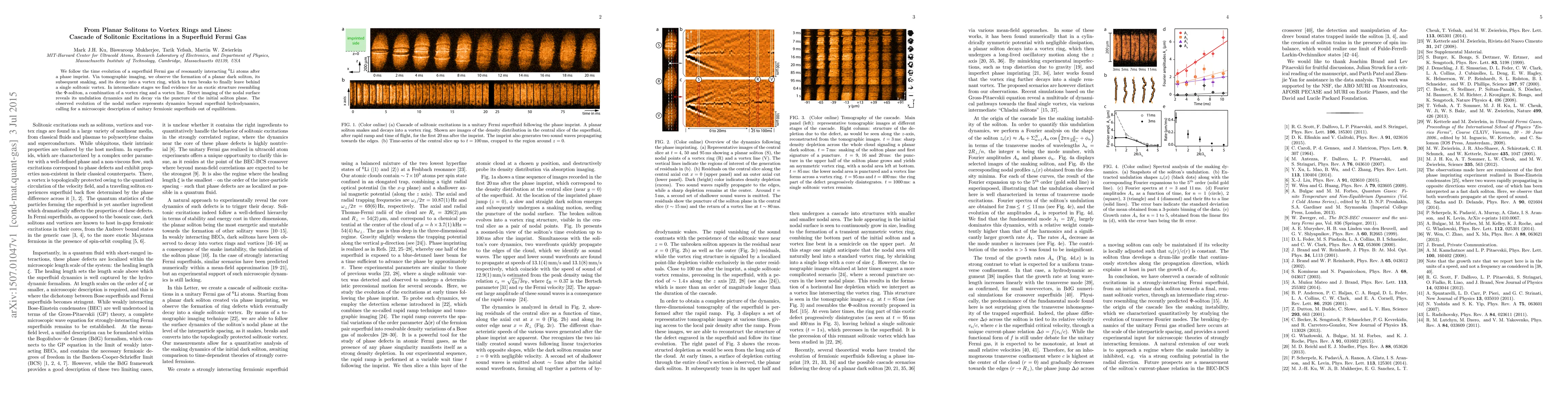 Researchers observe a sequence of solitonic excitations in a superfluid Fermi gas, including planar dark solitons, vortex rings, lines, and exotic structures like the Phi-soliton, revealing new dynamics beyond superfluid hydrodynamics.