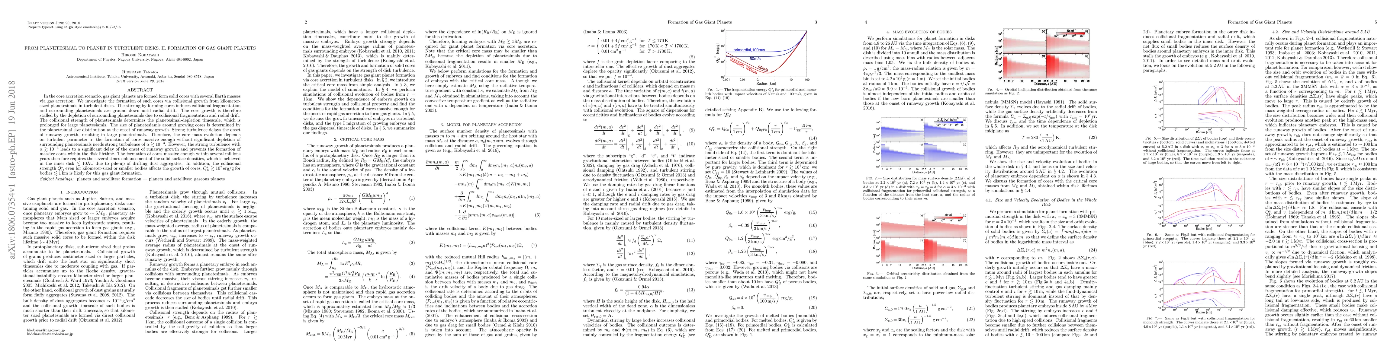 This paper explores the formation of gas giant planets through core accretion in turbulent disks, emphasizing the role of planetesimals and turbulence. It finds that strong turbulence is necessary for forming massive cores but delays runaway growth, necessitating enhanced solid surface densities in the inner disk for timely core formation.