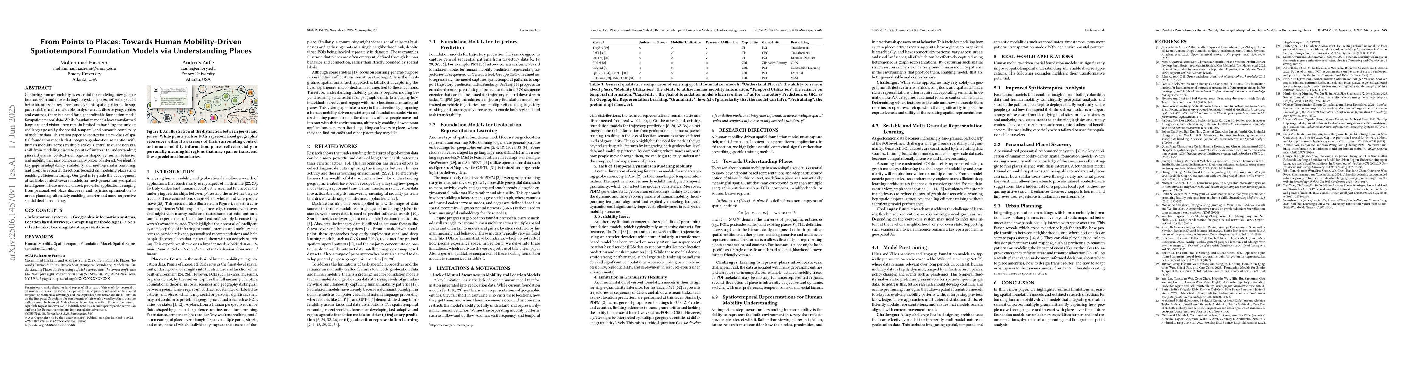 Capturing human mobility is essential for modeling how people interact with and move through physical spaces, reflecting social behavior, access to resources, and dynamic spatial patterns. To support scalable and transferable analysis across diverse geographies and contexts, there is a need for a generalizable foundation model for spatiotemporal data. While foundation models have transformed language and vision, they remain limited in handling the unique challenges posed by the spatial, temporal, and semantic complexity of mobility data. This vision paper advocates for a new class of spatial foundation models that integrate geolocation semantics with human mobility across multiple scales. Central to our vision is a shift from modeling discrete points of interest to understanding places: dynamic, context-rich regions shaped by human behavior and mobility that may comprise many places of interest. We identify key gaps in adaptability, scalability, and multi-granular reasoning, and propose research directions focused on modeling places and enabling efficient learning. Our goal is to guide the development of scalable, context-aware models for next-generation geospatial intelligence. These models unlock powerful applications ranging from personalized place discovery and logistics optimization to urban planning, ultimately enabling smarter and more responsive spatial decision-making.