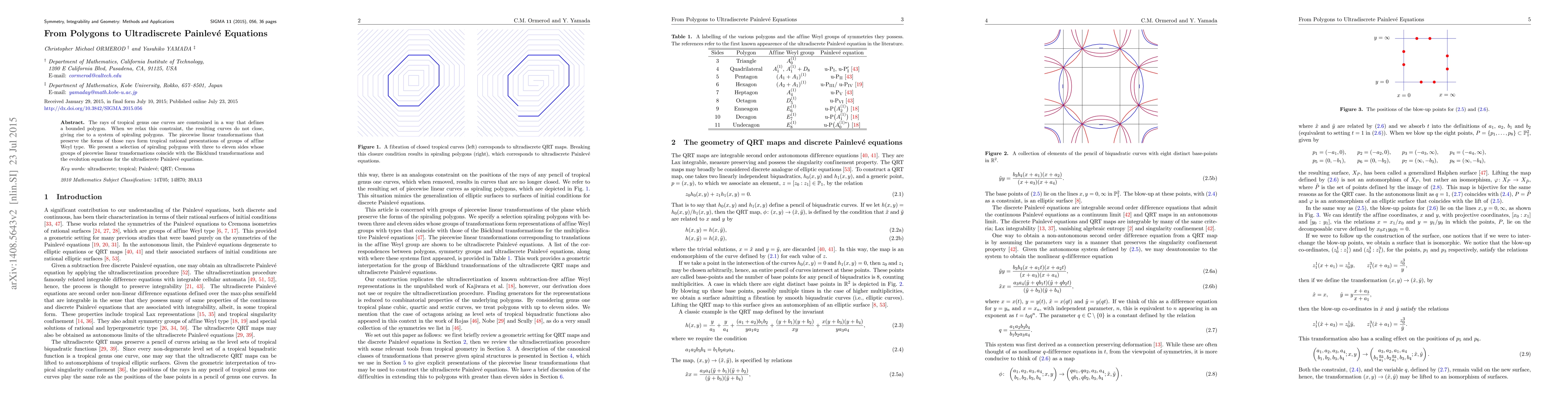 The rays of tropical genus one curves are constrained in a way that defines a bounded polygon. When we relax this constraint, the resulting curves do not close, giving rise to a system of spiraling polygons. The piecewise linear transformations that preserve the forms of those rays form tropical rational presentations of groups of affine Weyl type. We present a selection of spiraling polygons with three to eleven sides whose groups of piecewise linear transformations coincide with the B\"acklund transformations and the evolution equations for the ultradiscrete Painlev\'e equations.