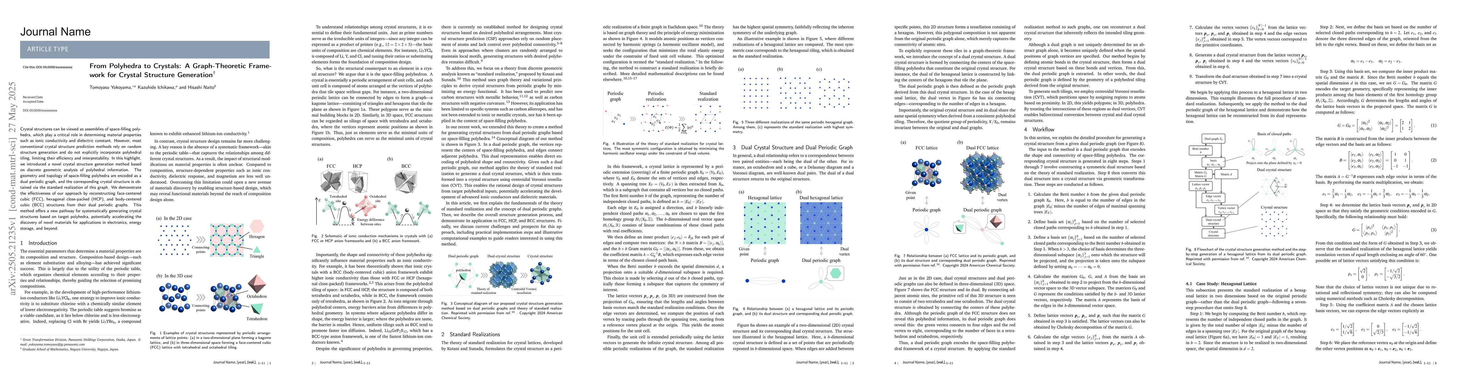 The research introduces a novel crystal structure generation method based on discrete geometric analysis of polyhedral information. It encodes the geometry and topology of space-filling polyhedra as a dual periodic graph, from which the corresponding crystal structure is obtained via standard realization.