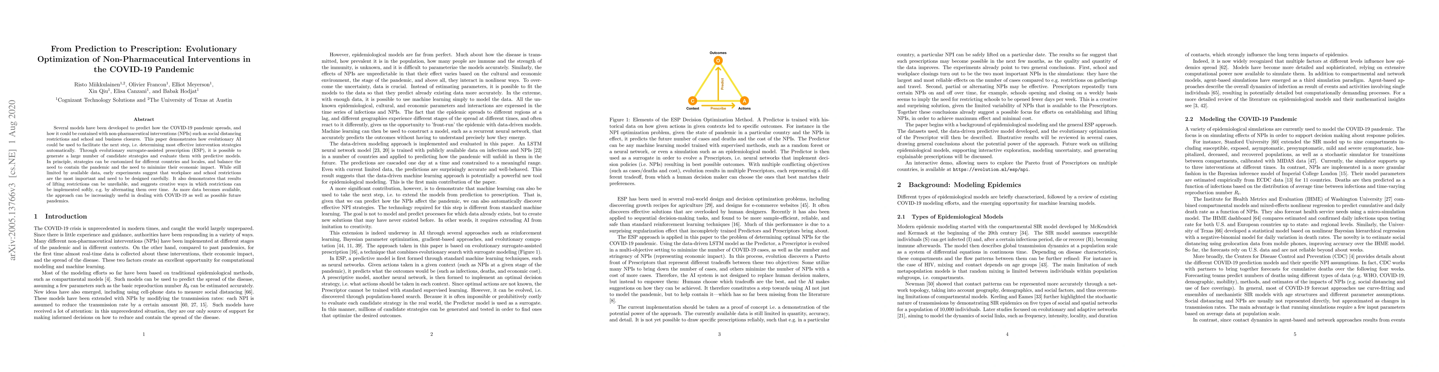This paper explores the use of evolutionary AI to optimize non-pharmaceutical interventions (NPIs) for COVID-19, demonstrating that evolutionary surrogate-assisted prescription can identify effective strategies balancing pandemic containment and economic impact. Early results highlight the importance of carefully designed workplace and school restrictions and suggest innovative ways to implement and lift restrictions.