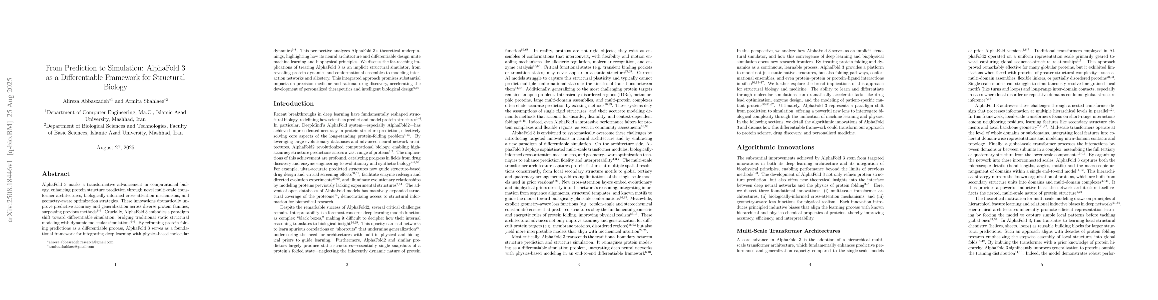 AlphaFold 3 represents a transformative advancement in computational biology, enhancing protein structure prediction through novel multi-scale transformer architectures, biologically informed cross-attention mechanisms, and geometry-aware optimization strategies. These innovations dramatically improve predictive accuracy and generalization across diverse protein families, surpassing previous methods. Crucially, AlphaFold 3 embodies a paradigm shift toward differentiable simulation, bridging traditional static structural modeling with dynamic molecular simulations. By reframing protein folding predictions as a differentiable process, AlphaFold 3 serves as a foundational framework for integrating deep learning with physics-based molecular