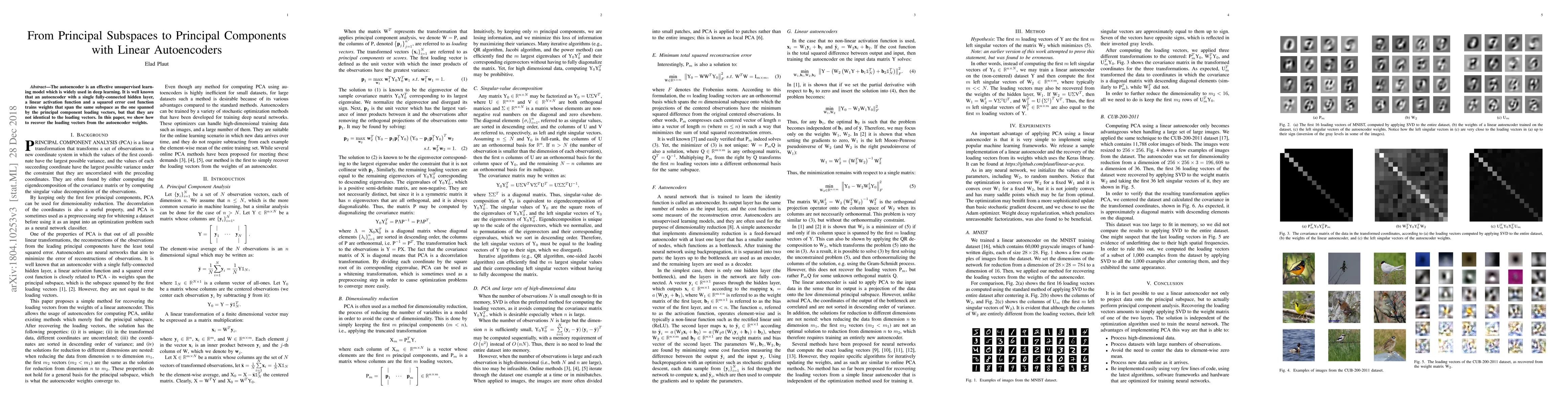 Researchers developed a method to recover principal component loading vectors from autoencoder weights, revealing they span the same subspace as the original data.