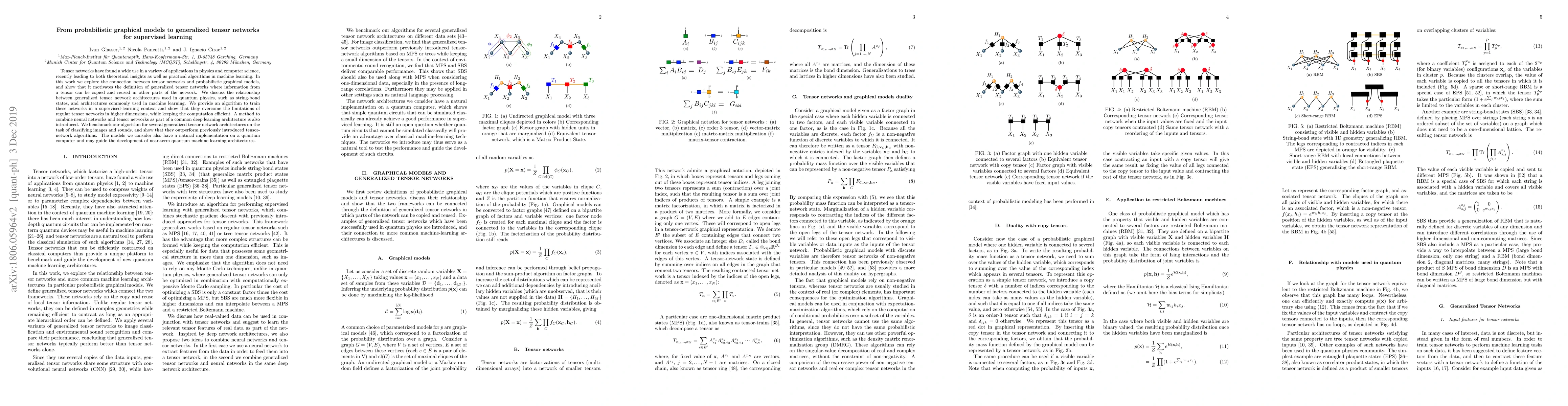 This paper explores the connection between tensor networks and probabilistic graphical models, defining generalized tensor networks that allow information reuse. It introduces an efficient supervised learning algorithm for these networks, demonstrating their superiority over traditional tensor networks in higher dimensions and their potential for quantum machine learning applications.