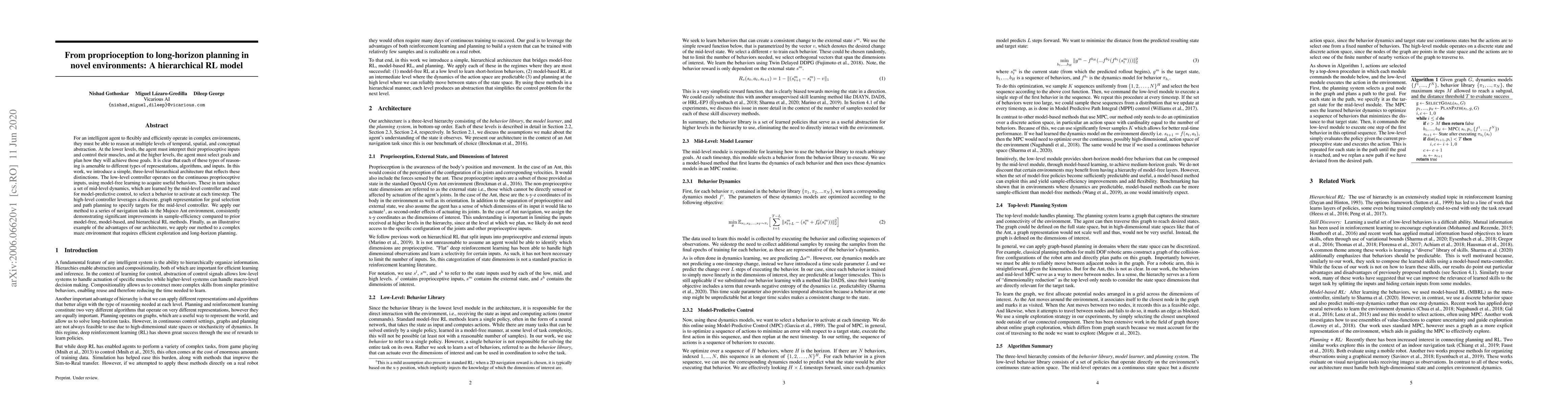 A novel hierarchical RL model demonstrates significant improvements in sample-efficiency for navigation tasks in complex environments, leveraging a three-level architecture that separates proprioception, mid-level dynamics, and high-level goal selection.