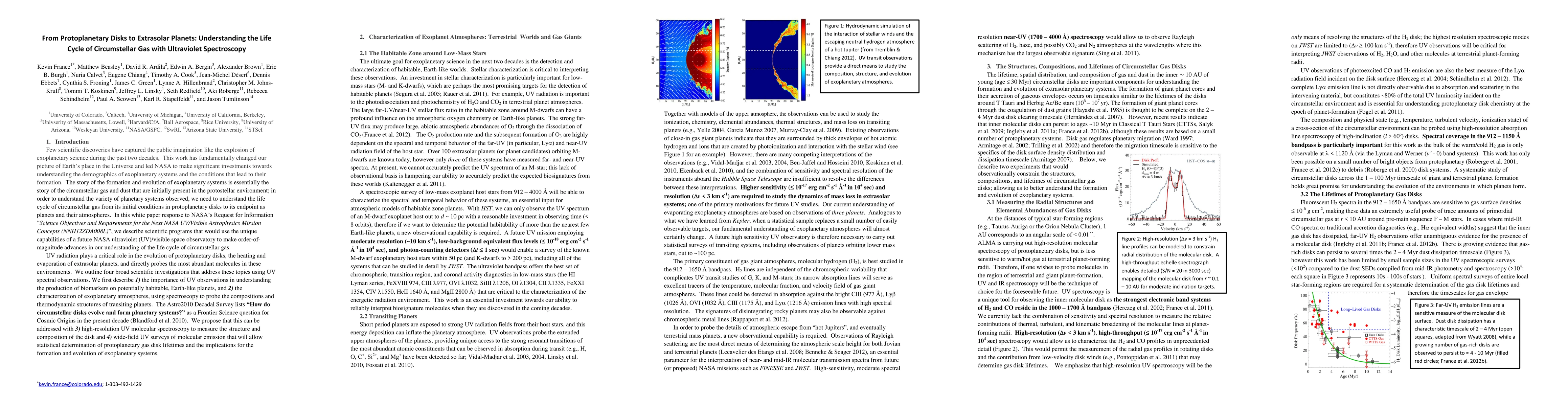 Few scientific discoveries have captured the public imagination like the explosion of exoplanetary science during the past two decades. This work has fundamentally changed our picture of Earth's place in the Universe and led NASA to make significant investments towards understanding the demographics of exoplanetary systems and the conditions that lead to their formation. The story of the formation and evolution of exoplanetary systems is essentially the story of the circumstellar gas and dust that are initially present in the protostellar environment; in order to understand the variety of planetary systems observed, we need to understand the life cycle of circumstellar gas from its initial conditions in protoplanetary disks to its endpoint as planets and their atmospheres. In this white paper response to NASA's Request for Information "Science Objectives and Requirements for the Next NASA UV/Visible Astrophysics Mission Concepts (NNH12ZDA008L)", we describe scientific programs that would use the unique capabilities of a future NASA ultraviolet (UV)/visible space observatory to make order-of-magnitude advances in our understanding of the life cycle of circumstellar gas.