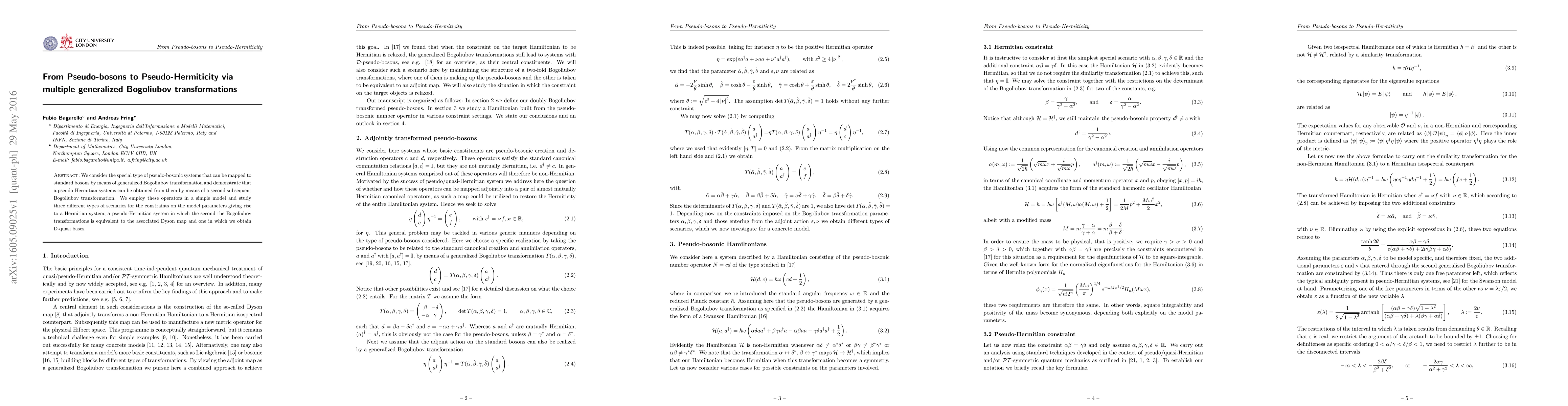 Researchers show that pseudo-bosonic systems can be transformed into pseudo-Hermitian systems through multiple Bogoliubov transformations, with implications for quantum mechanics models.