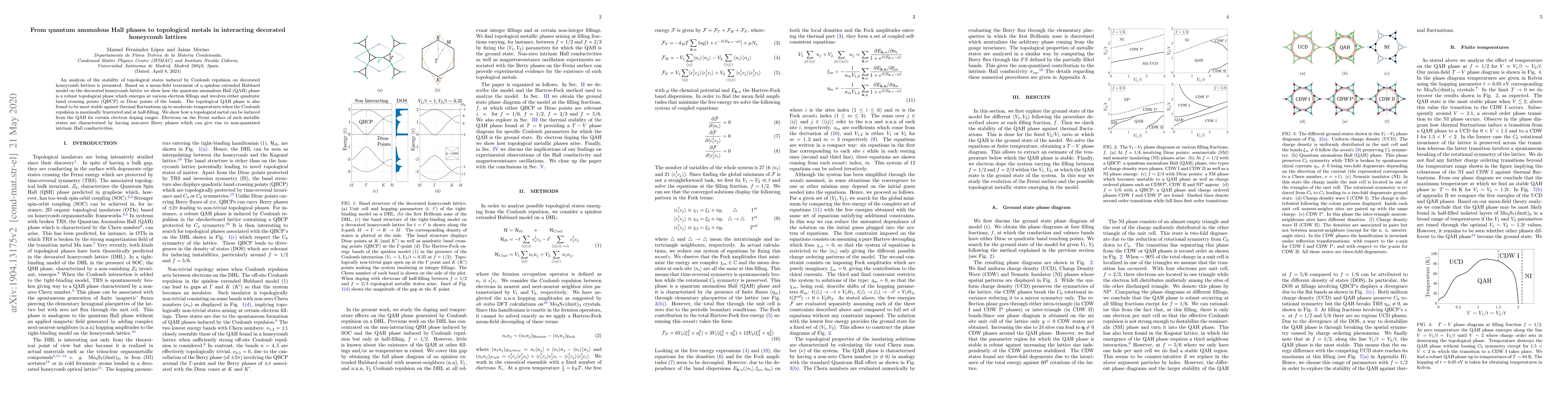 This paper investigates the stability of topological states in decorated honeycomb lattices under Coulomb repulsion, demonstrating the robustness of the quantum anomalous Hall phase. It also shows the transition from a topological metal via electron doping, characterized by non-zero intrinsic quantum Hall conductivity.