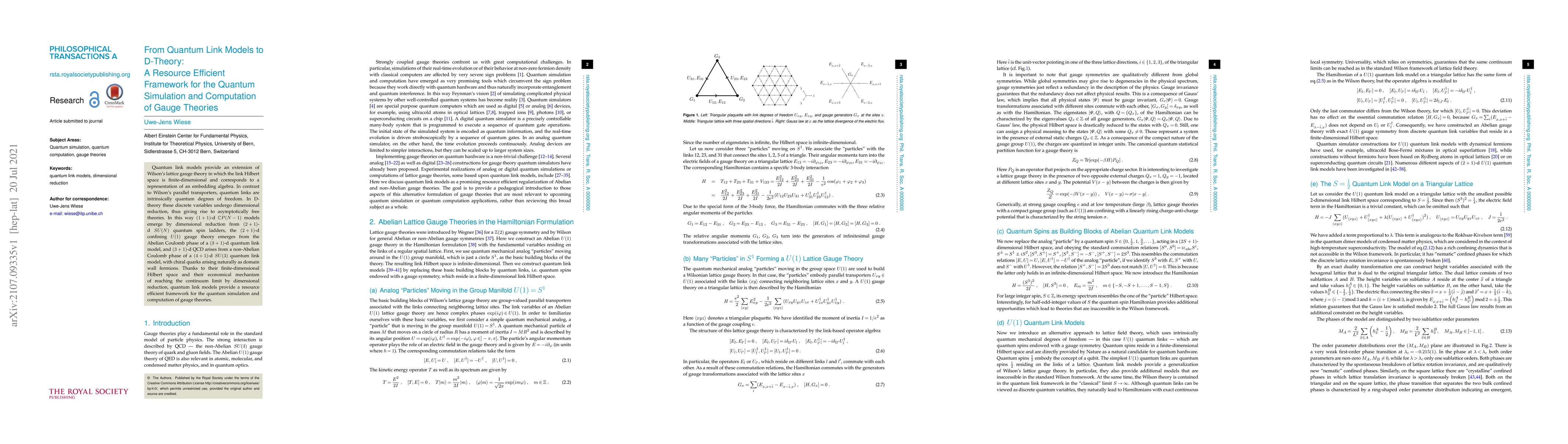 Quantum link models provide an extension of Wilson's lattice gauge theory in which the link Hilbert space is finite-dimensional and corresponds to a representation of an embedding algebra. In contrast to Wilson's parallel transporters, quantum links are intrinsically quantum degrees of freedom. In D-theory these discrete variables undergo dimensional reduction, thus giving rise to asymptotically free theories. In this way (1+1)-d CP(N-1) models emerge by dimensional reduction from (2+1)-d SU(N) quantum spin ladders, the (2+1)-d confining U(1) gauge theory emerges from the Abelian Coulomb phase of a (3+1)-d quantum link model, and (3+1)-d QCD arises from a non-Abelian Coulomb phase of a (4+1)-d SU(3) quantum link model, with chiral quarks arising naturally as domain wall fermions. Thanks to their finite-dimensional Hilbert space and their economical mechanism of reaching the continuum limit by dimensional reduction, quantum link models provide a resource efficient framework for the quantum simulation and computation of gauge theories.