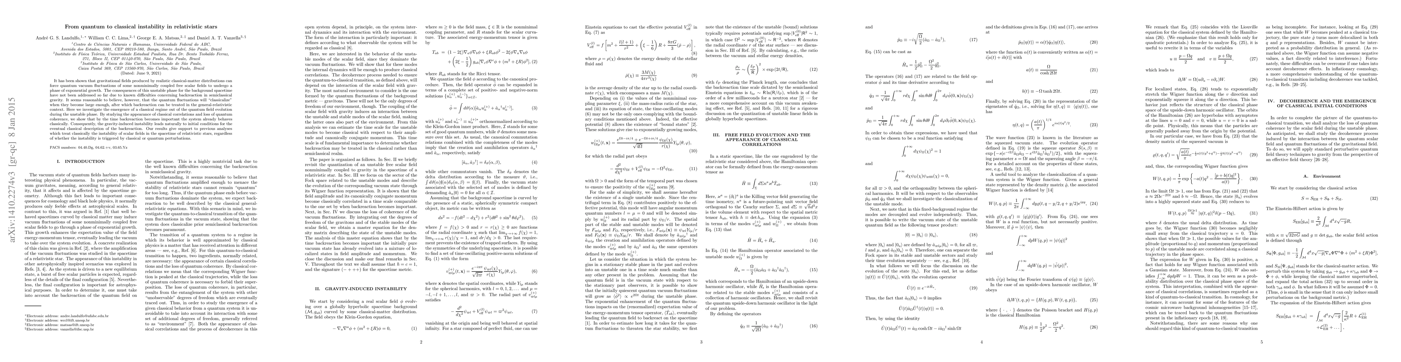 This research explores how quantum vacuum fluctuations in scalar fields, influenced by strong gravitational fields of relativistic stars, can grow exponentially, eventually 'classicalizing' and leading to initial conditions for a general-relativistic description. The study supports treating such instabilities classically, irrespective of their trigger.