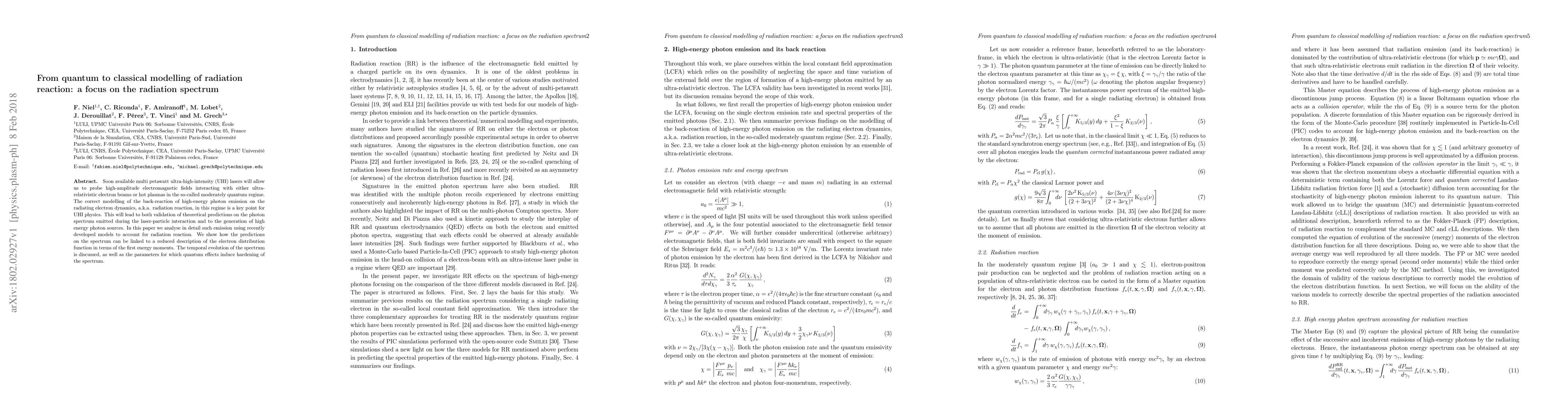 This paper investigates the modelling of radiation reaction in ultra-high-intensity laser interactions with relativistic electron beams or hot plasmas, focusing on the emitted photon spectrum. It uses advanced models to link theoretical predictions of the spectrum to the electron distribution function, highlighting the impact of quantum effects on spectral hardening.
