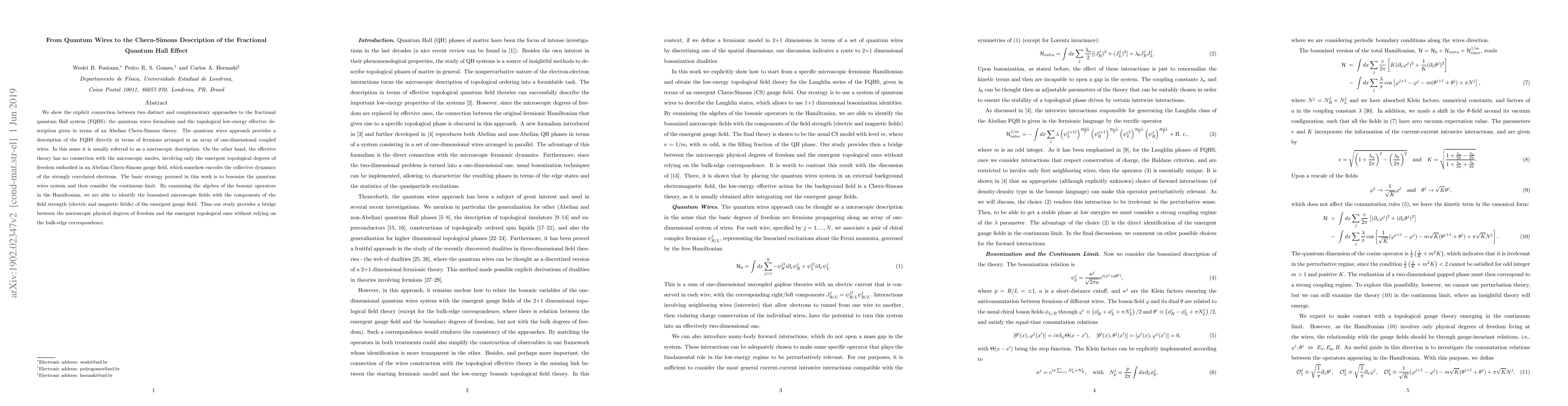 This paper establishes a connection between the quantum wires formalism and the Chern-Simons theory for the fractional quantum Hall effect, demonstrating how the microscopic fermionic description in quantum wires translates to the emergent topological description via bosonization and the continuum limit.