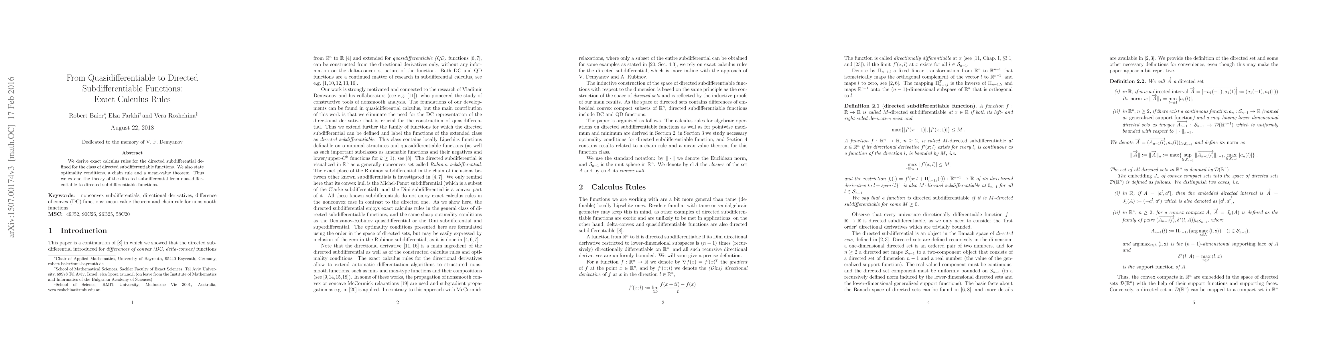 This paper derives exact calculus rules for directed subdifferentials, including optimality conditions, a chain rule, and a mean-value theorem, extending the theory from quasidifferentiable to directed subdifferentiable functions.
