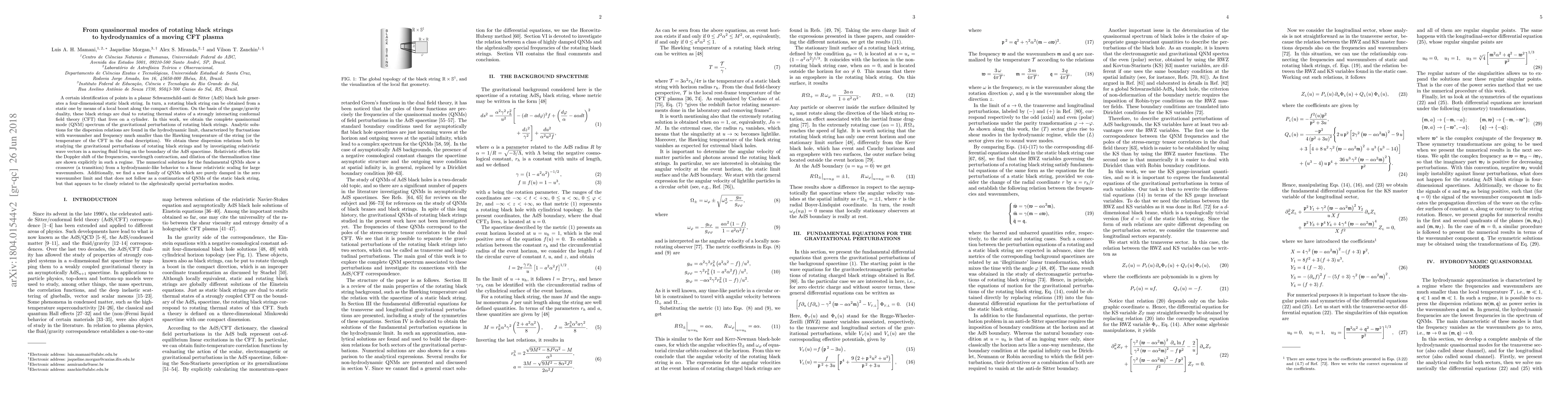 This paper investigates the quasinormal mode spectrum of rotating black strings and connects it to the hydrodynamics of a strongly interacting conformal field theory (CFT) plasma. The study reveals a crossover from hydrodynamic to relativistic behavior in the dispersion relations, highlighting effects like Doppler shift and wavelength contraction.