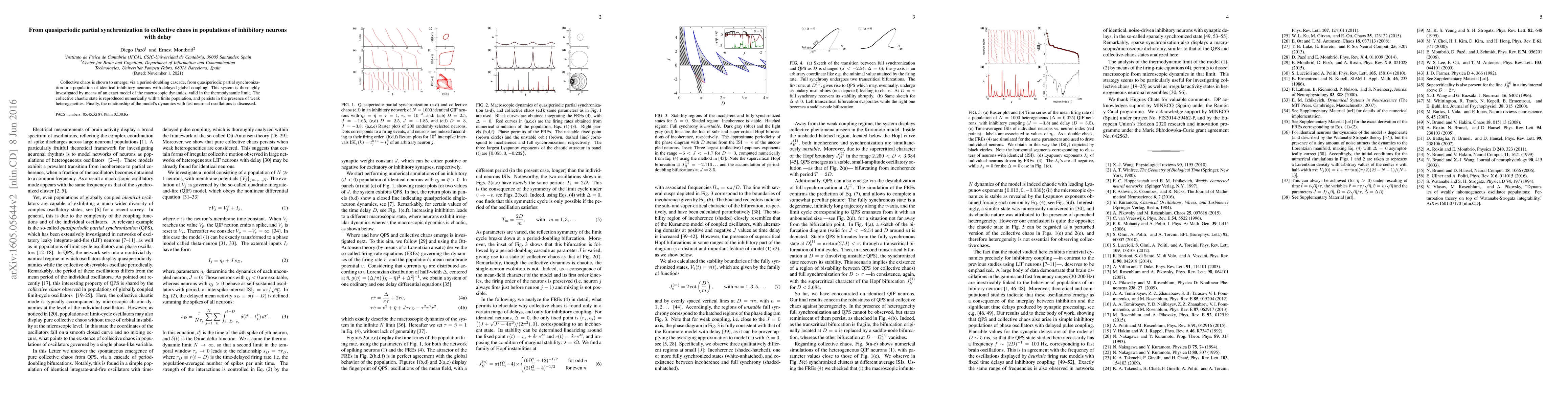 This paper investigates the emergence of collective chaos from quasiperiodic partial synchronization in a population of inhibitory neurons with delayed global coupling, demonstrating a period-doubling cascade. The dynamics are analyzed using an exact macroscopic model and numerically validated, showing persistence even with weak heterogeneities.