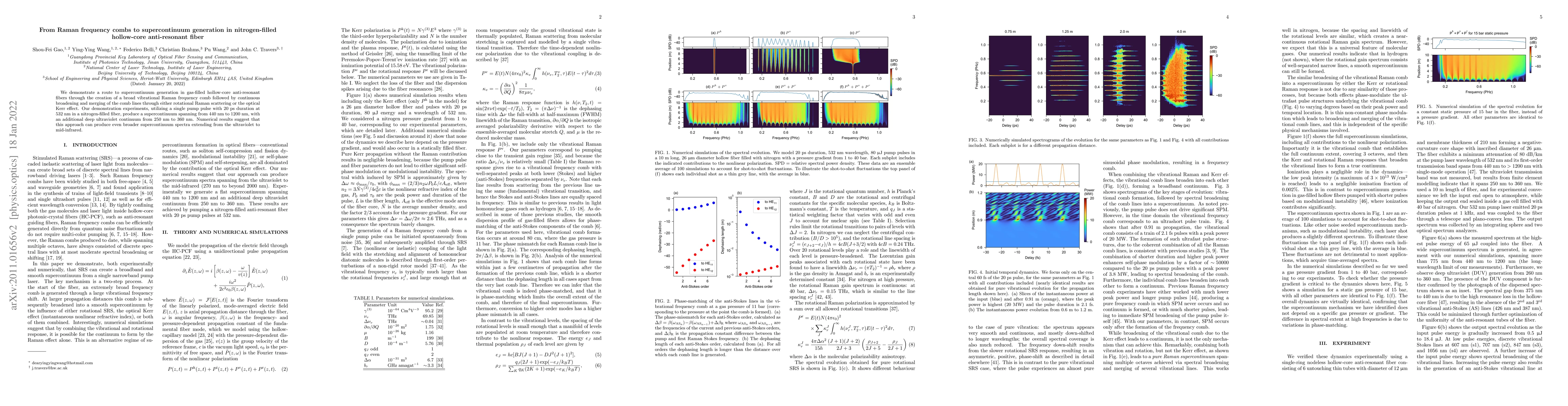 This paper demonstrates supercontinuum generation in nitrogen-filled hollow-core anti-resonant fibers via Raman frequency combs, achieving a broad spectrum from 250 nm to 1200 nm, with numerical predictions for even broader spectra. The process utilizes rotational Raman scattering or the optical Kerr effect for continuous broadening.