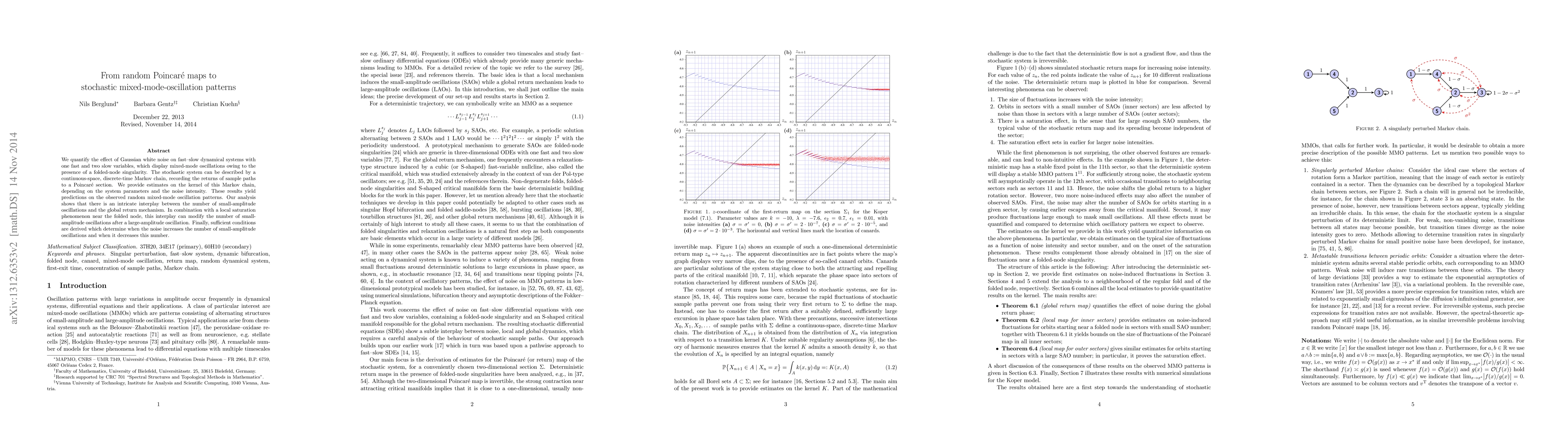 This paper investigates the impact of Gaussian white noise on fast-slow dynamical systems exhibiting mixed-mode oscillations, characterized by a folded-node singularity. It provides quantitative estimates on the stochastic kernel of the associated Markov chain, revealing the complex interplay between noise intensity, system parameters, and the number of small-amplitude oscillations following large-amplitude events.