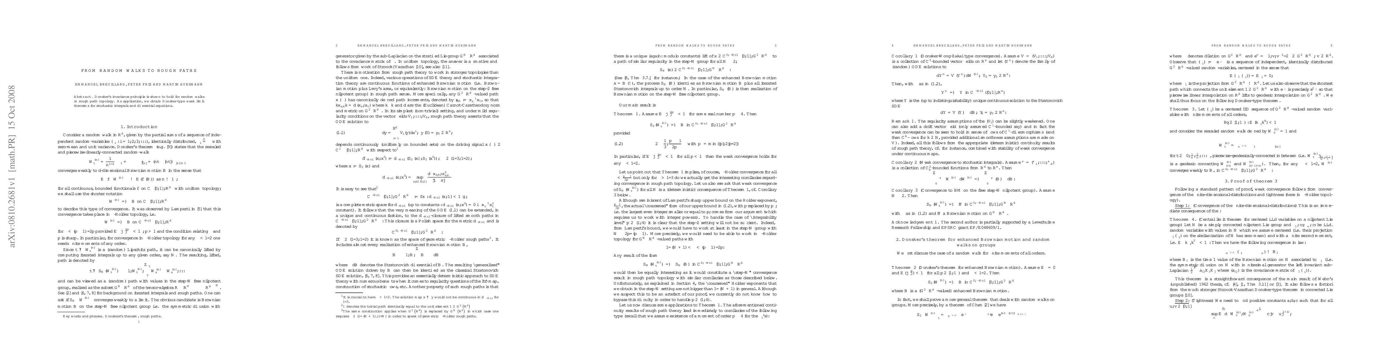 This paper proves Donsker's invariance principle for random walks in rough path topology, leading to new limit theorems for stochastic integrals and differential equations.