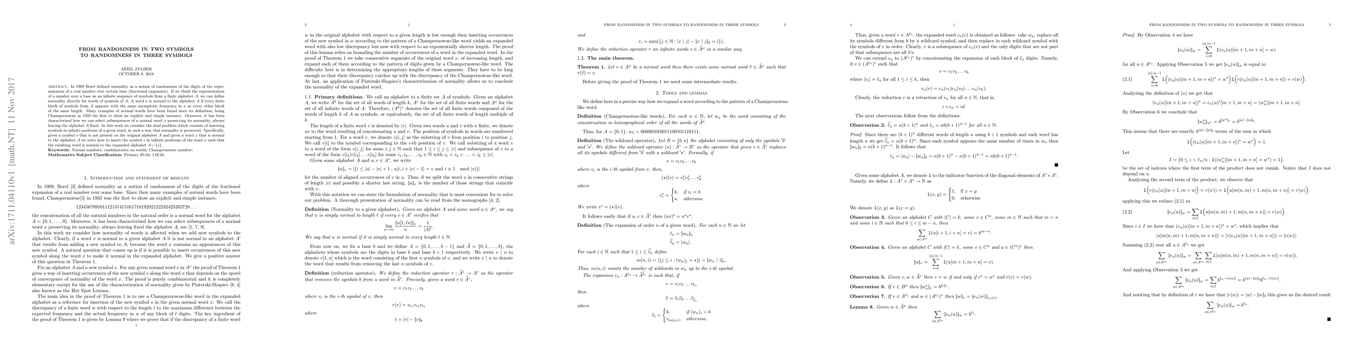 In 1909 Borel defined normality as a notion of randomness of the digits of the representation of a real number over certain base (fractional expansion). If we think the representation of a number over a base as an infinite sequence of symbols from a finite alphabet $A$, we can define normality directly for words of symbols of $A$: A word $x$ is normal to the alphabet $A$ if every finite block of symbols from $A$ appears with the same asymptotic frequency in $x$ as every other block of the same length. Many examples of normal words have been found since its definition, being Champernowne in 1933 the first to show an explicit and simple instance. Moreover, it has been characterized how we can select subsequences of a normal word $x$ preserving its normality, always leaving the alphabet $A$ fixed. In this work we consider the dual problem which consists of inserting symbols in infinite positions of a given word, in such a way that normality is preserved. Specifically, given a symbol $s$ that is not present on the original alphabet $A$ and given a word $x$ that is normal to the alphabet $A$ we solve how to insert the symbol $s$ in infinite positions of the word $x$ such that the resulting word is normal to the expanded alphabet $A\cup \{s\}$.