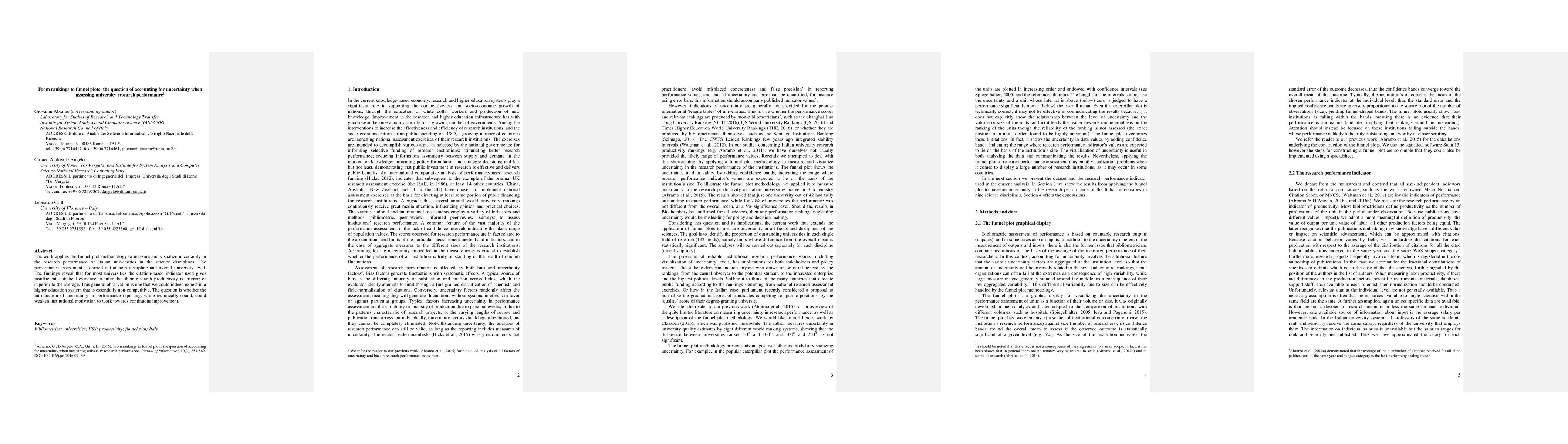 The paper employs funnel plot methodology to assess and visualize uncertainty in Italian universities' research performance across science disciplines, finding insufficient evidence to rank universities definitively. It raises concerns about whether incorporating uncertainty may undermine institutional motivation for continuous improvement.