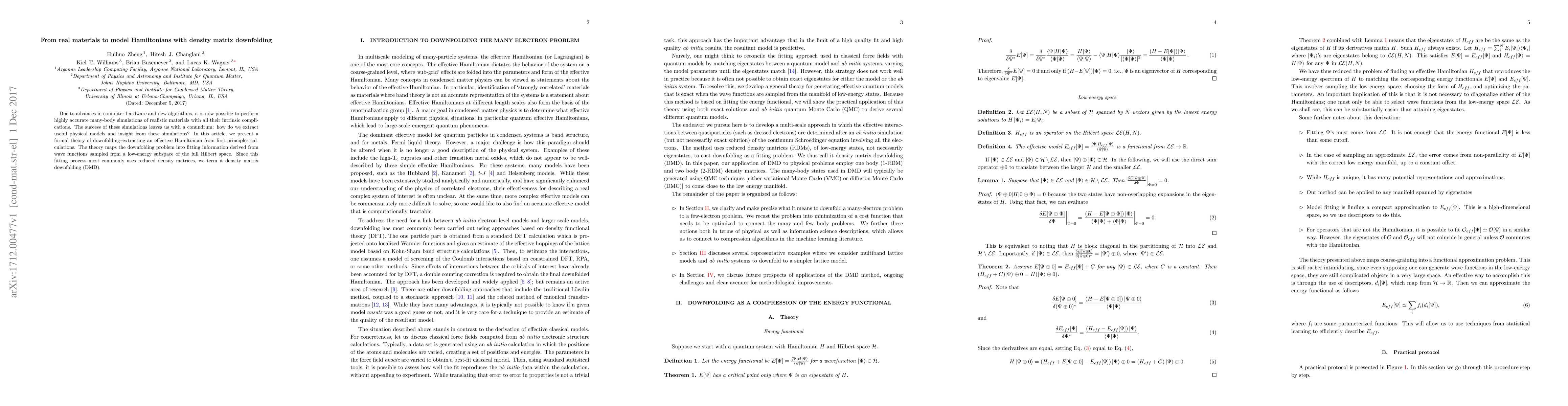 This paper introduces a method for deriving effective Hamiltonians from first-principles simulations using density matrix downfolding (DMD), which fits information from low-energy subspaces to extract useful physical models and insights from complex many-body simulations. The DMD approach leverages reduced density matrices to simplify the downfolding process.