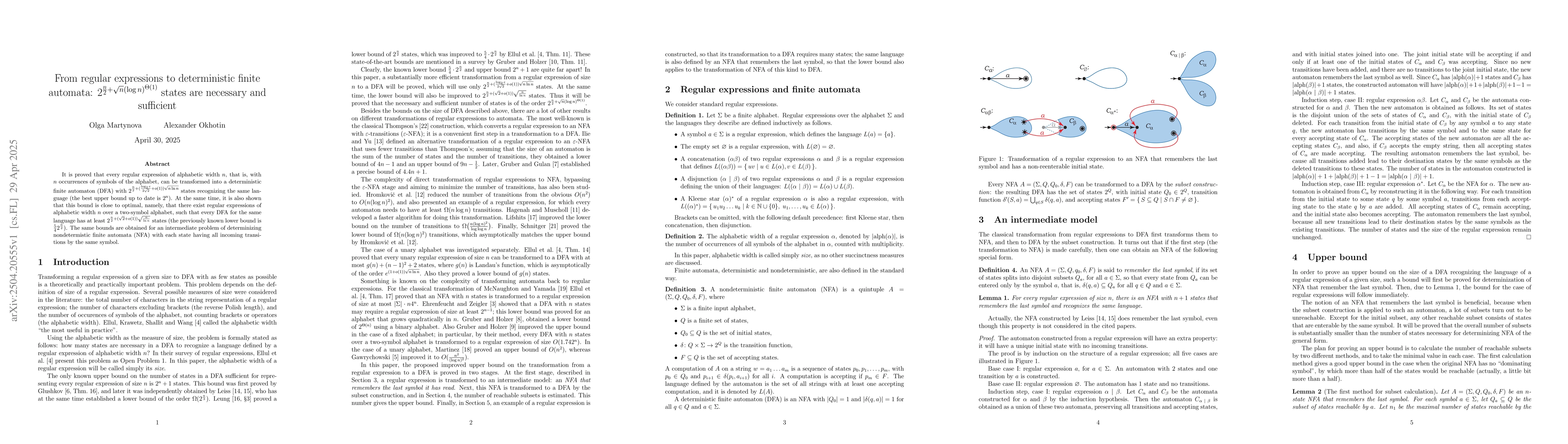 The paper presents a detailed proof of the necessary and sufficient state complexity for DFA construction from regular expressions of a given alphabetic width, including refined lower and upper bounds.