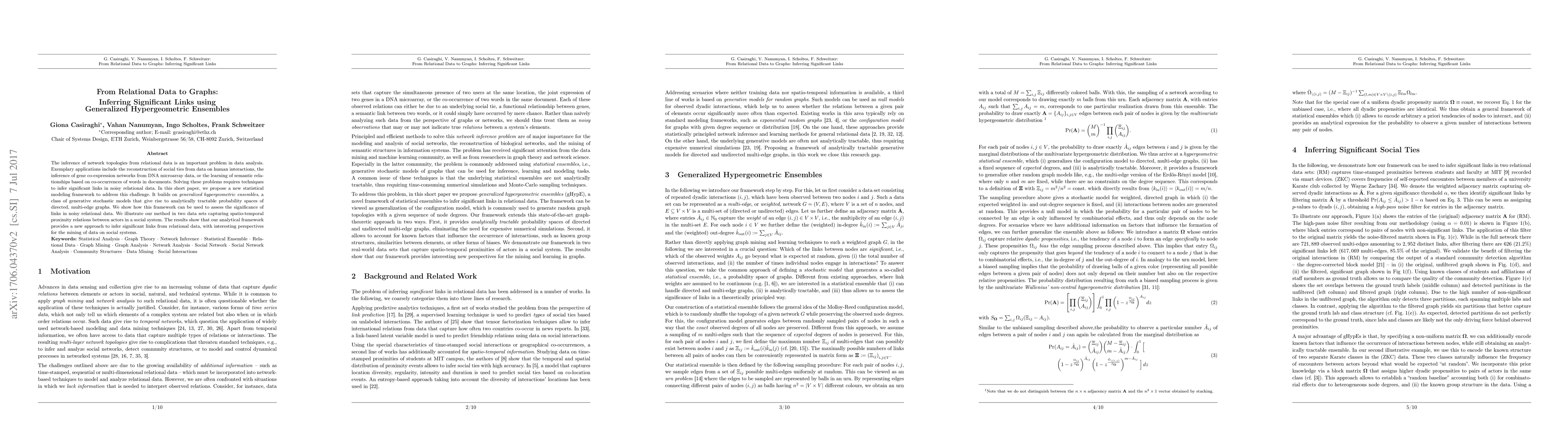 This paper proposes a statistical modeling framework based on generalized hypergeometric ensembles to infer significant links in noisy relational data. The method is demonstrated on datasets capturing social interactions, showing its potential for analyzing complex networks.