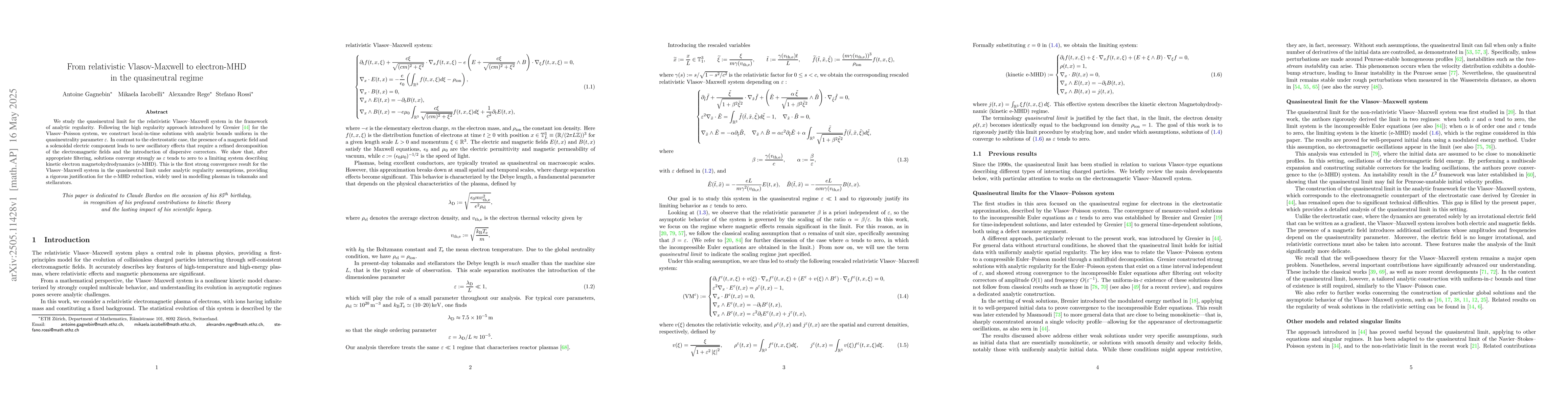 The research employs the high regularity approach introduced by Grenier for the Vlasov-Poisson system, constructing local-in-time solutions with analytic bounds uniform in the quasineutrality parameter ε for the relativistic Vlasov-Maxwell system.