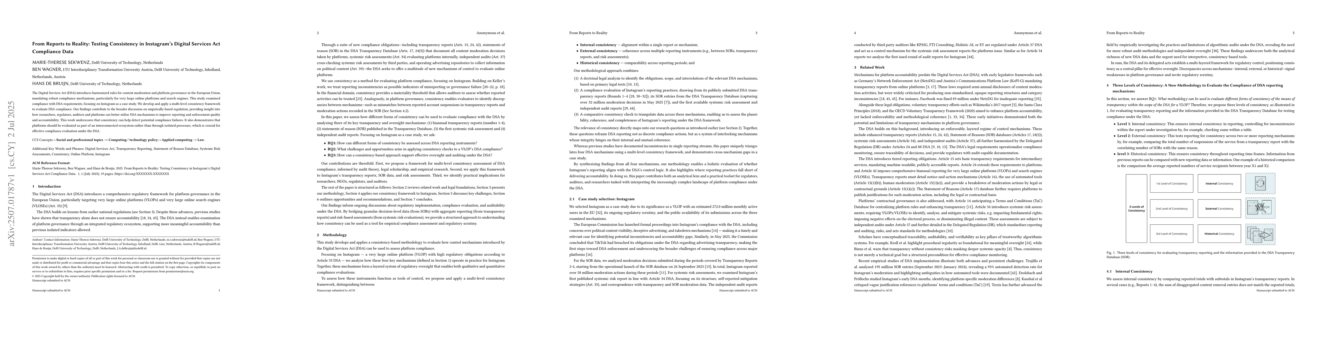 The Digital Services Act (DSA) introduces harmonized rules for content moderation and platform governance in the European Union, mandating robust compliance mechanisms, particularly for very large online platforms and search engines. This study examined compliance with DSA requirements, focusing on Instagram as a case study. We develop and apply a multi-level consistency framework to evaluate DSA compliance. Our findings contribute to the broader discussion on empirically-based regulation, providing insight into how researchers, regulators, auditors and platforms can better utilize DSA mechanisms to improve reporting and enforcement quality and accountability. This work underscores that consistency can help detect potential compliance failures. It also demonstrates that platforms should be evaluated as part of an interconnected ecosystem rather than through isolated processes, which is crucial for effective compliance evaluation under the DSA.