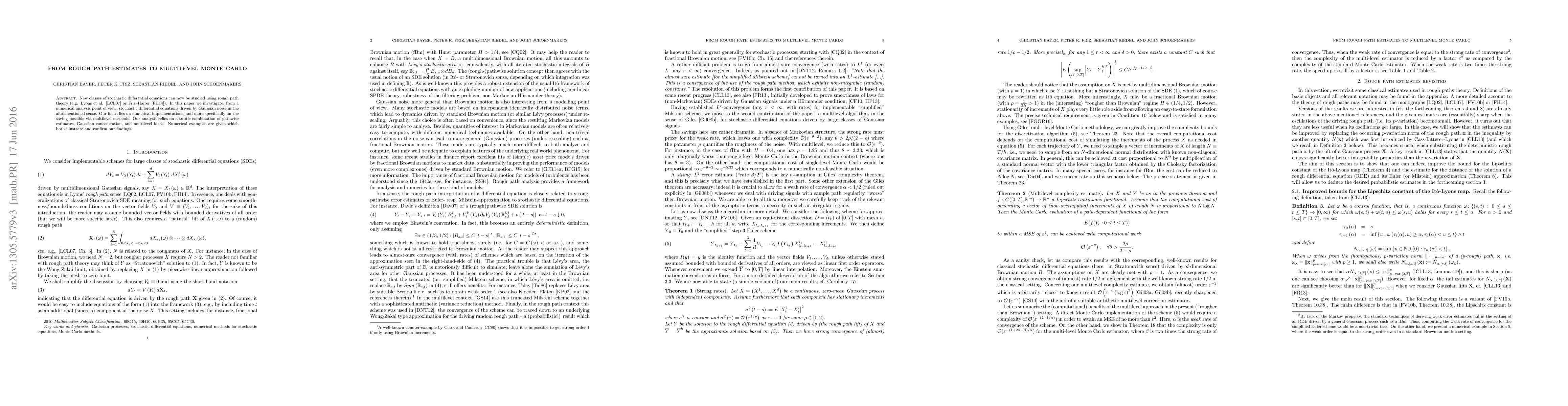 This paper explores the application of rough path theory to stochastic differential equations with Gaussian noise, focusing on efficient numerical methods. It combines pathwise estimates, Gaussian concentration, and multilevel techniques, providing illustrative numerical examples to validate its findings.