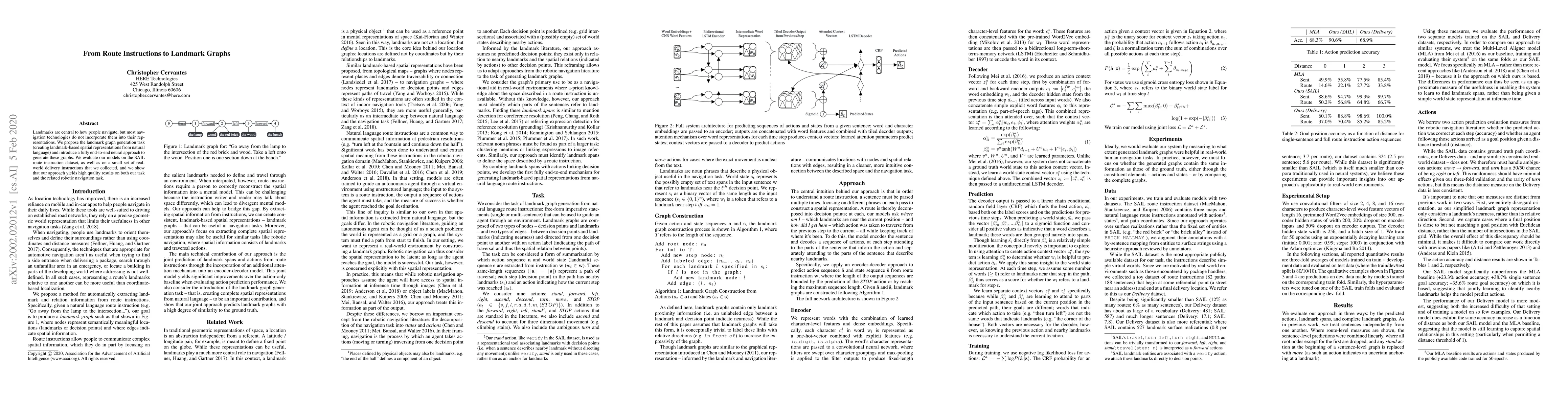 This research introduces a novel method using neural networks to generate landmark-based spatial representations from natural language route instructions. Evaluations on the SAIL dataset and real-world delivery instructions demonstrate high-quality results for navigation tasks.