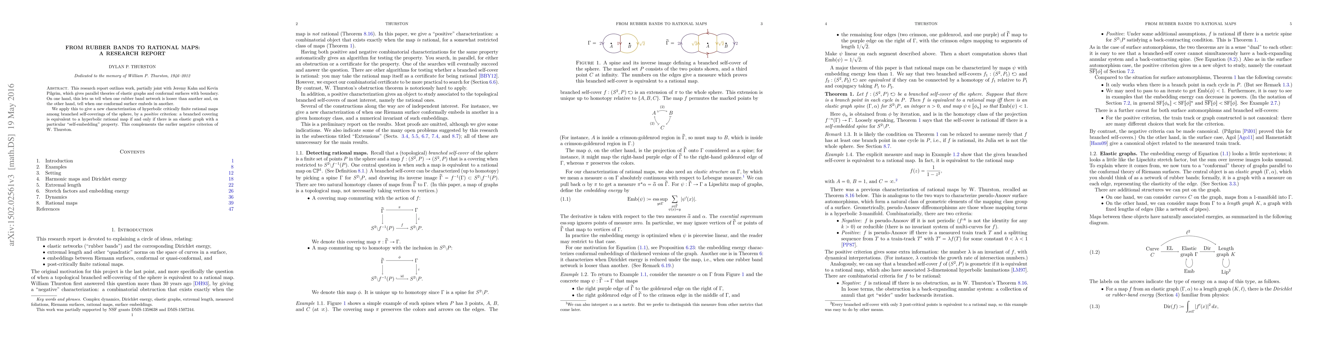 This research report outlines work, partially joint with Jeremy Kahn and Kevin Pilgrim, which gives parallel theories of elastic graphs and conformal surfaces with boundary. One one hand, this lets us tell when one rubber band network is looser than another, and on the other hand tell when one conformal surface embeds in another. We apply this to give a new characterization of hyperbolic critically finite rational maps among branched self-coverings of the sphere, by a positive criterion: a branched covering is equivalent to a hyperbolic rational map if and only if there is an elastic graph with a particular "self-embedding" property. This complements the earlier negative criterion of W. Thurston.