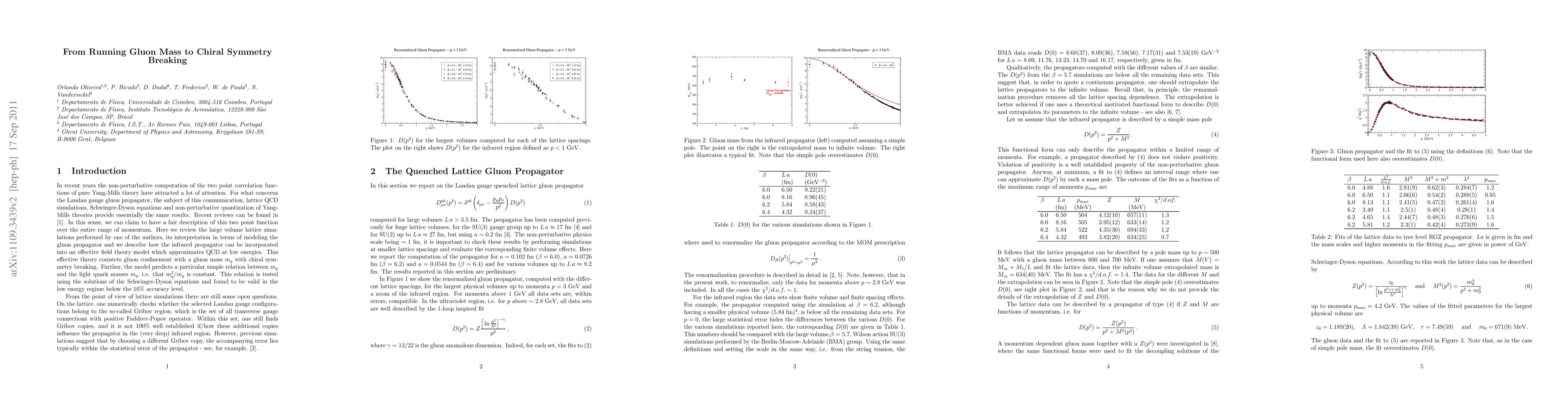 The gluon propagator is one of the fundamental Green's functions of QCD. It is an essential ingredient in, for example, the modeling of the Schwinger-Dyson equation used to describe hadronic phenomenology. From the Landau gauge gluon propagator, computed with lattice QCD methods, we discuss its interpretation as a massive propagator and measure the gluon mass as a function of the momenta. Special attention is given to the mass at infrared scales. In the last part of the talk, the gluon mass and chiral symmetry breaking are related via an effective model for QCD.
